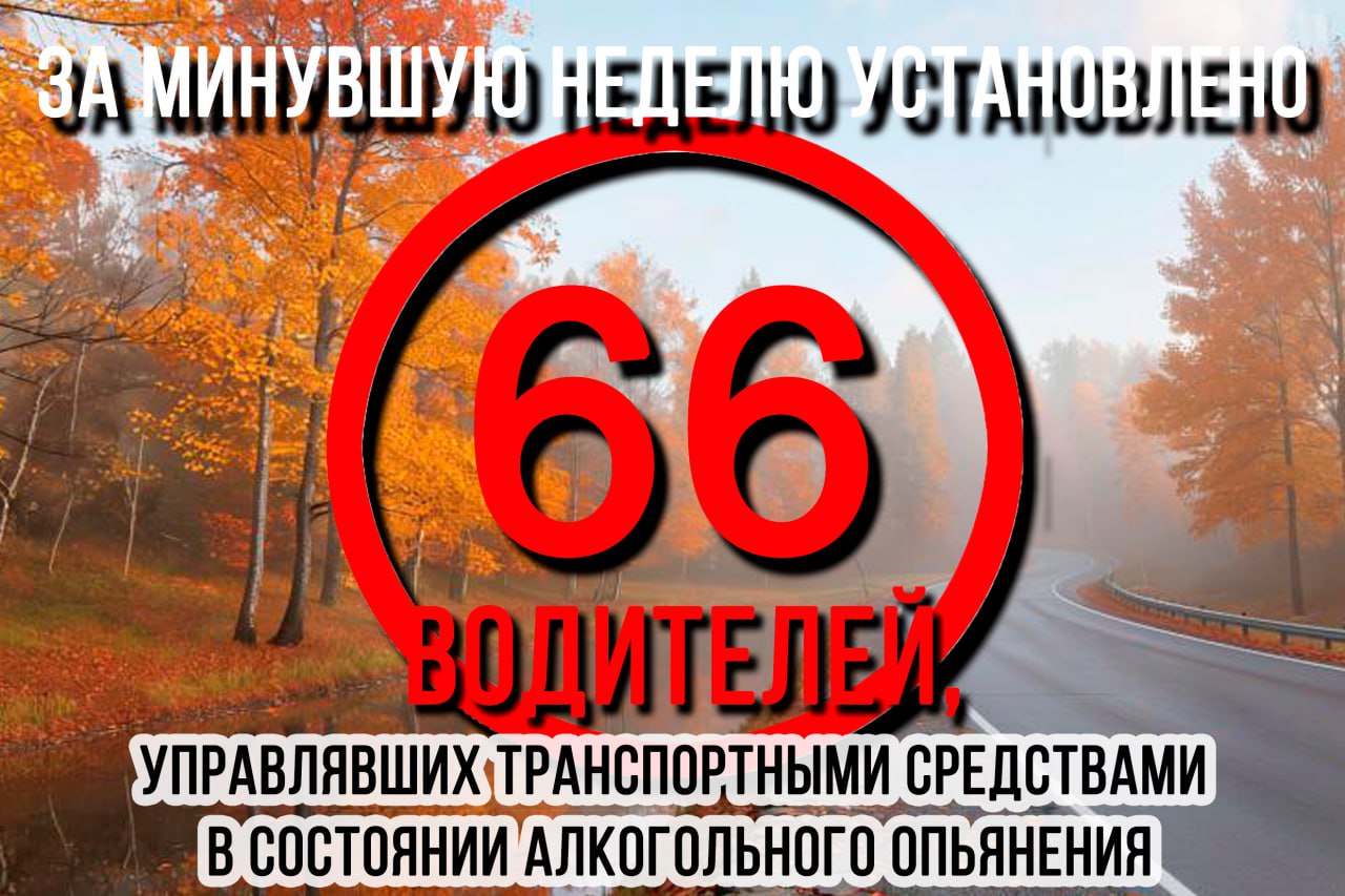 Сотрудниками полиции установлено 66 водителей, управлявших транспортными средствами в состоянии алкогольного опьянения, включая отказавшихся от медицинского освидетельствования. В одном случае в действиях нарушителя усматривается состав преступления, предусмотренного статьей 264.1 УК РФ «Управление транспортным средством в состоянии опьянения лицом, подвергнутым административному наказанию или имеющим судимость».