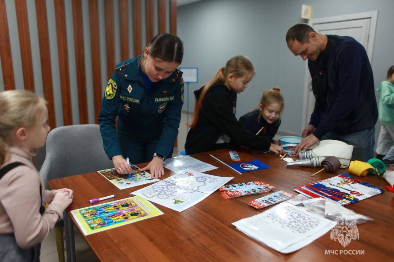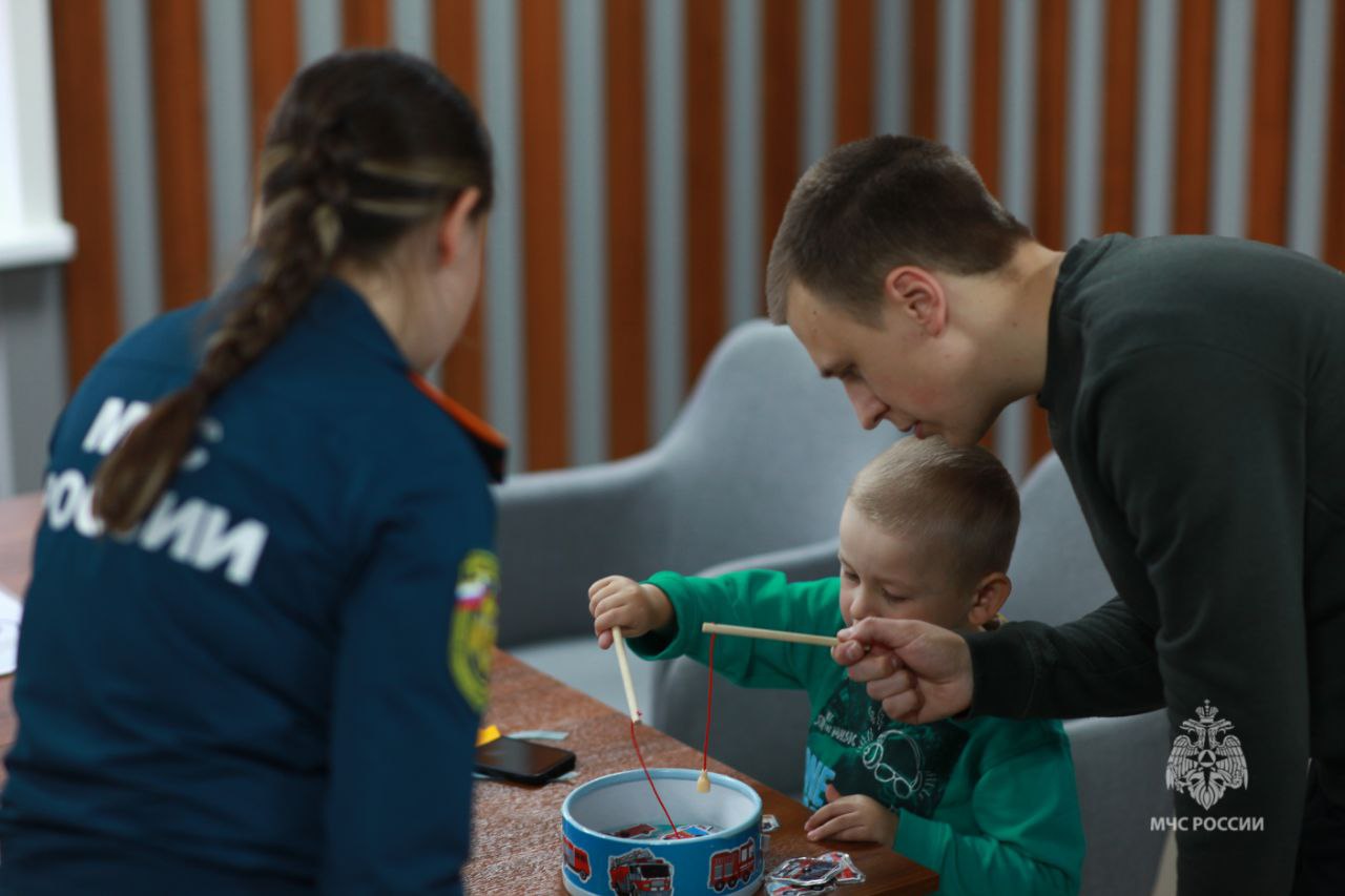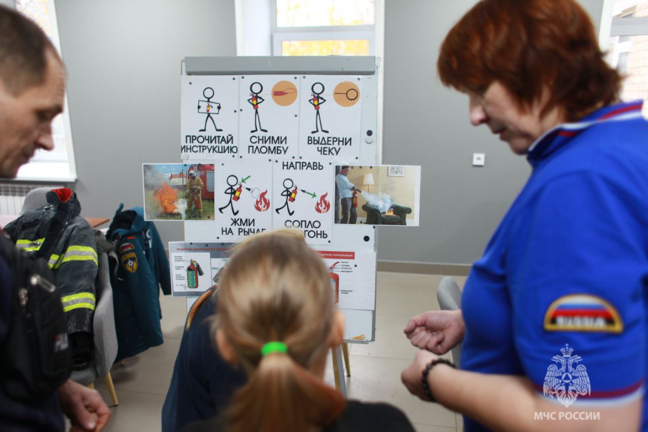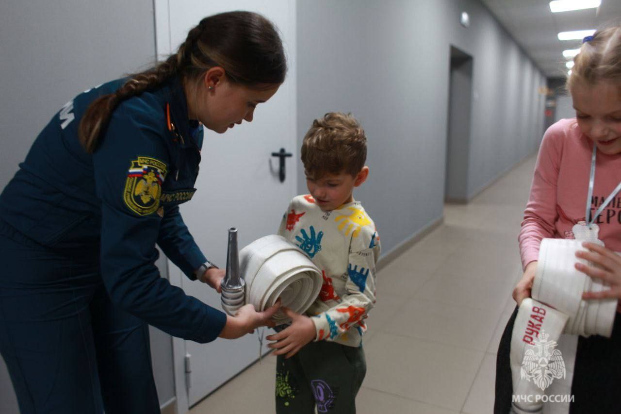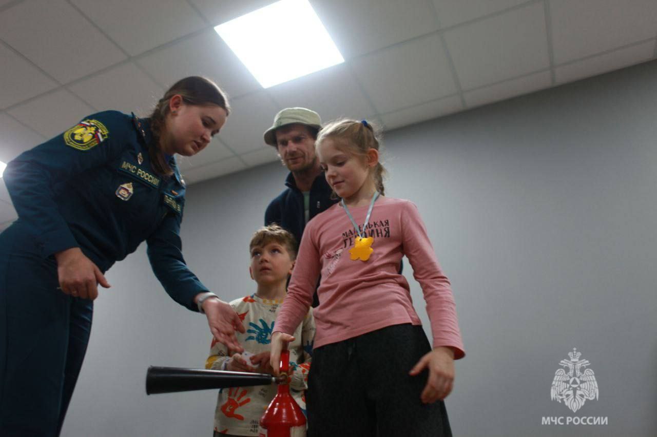 На интерактивной площадке детям и их родителям напомнили о правилах пожарной безопасности. Ребята попробовали работать с пожарными рукавами — как игрушечными, так и настоящими, решали логические задачи, осваивали работу с огнетушителями и отрабатывали тушение условного пожара. Большой интерес вызвал этап с боевой одеждой: дети надевали её на манекен, а взрослые примеряли настоящую экипировку.