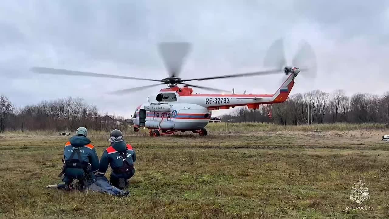 Тренировка личного состава МЧС России с вертолетной лебедкой СЛГ-300