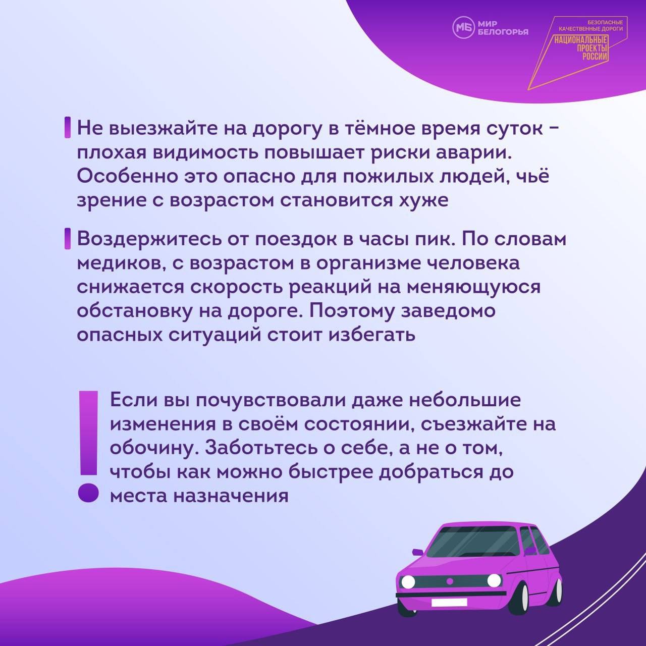 Пожилые граждане чаще становятся участниками дорожно-транспортных происшествий именно потому, что возрастные изменения замедляют реакцию, ухудшают зрение и слух, снижают концентрацию внимания. Соблюдая несколько простых рекомендаций, можно минимизировать риски и сделать своё передвижение спокойнее и комфортнее!
