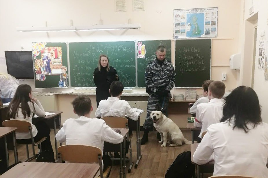 Интерес детей вызвало знакомство с кинологом со служебно-розыскной собакой, обученной на поиск запрещенных веществ.