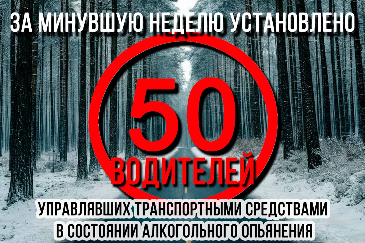 Сотрудниками полиции установлено 50 водителей, управлявших транспортными средствами в состоянии алкогольного опьянения, включая отказавшихся от медицинского освидетельствования. В 6 случаях в действиях нарушителей усматривается состав преступления, предусмотренного статьей 264.1 УК РФ «Управление транспортным средством в состоянии опьянения лицом, подвергнутым административному наказанию или имеющим судимость».
