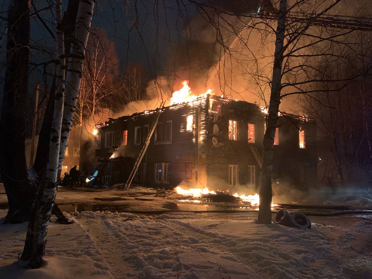 По предварительной информации в одной из квартир деревянного дома произошло возгорание, в результате которого последовало обрушение кровли. Несмотря на то, что данный дом 22.12.2021 признан аварийным и подлежащим сносу, фактически он не расселен.