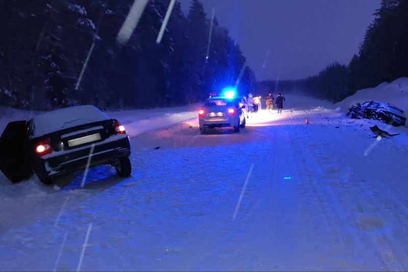 По предварительной информации, в 13.25 на 59 километре автодороги «Карпогоры-Сосновка-Нюхча» водитель 1996 года рождения, управляя автомобилем «Лада», двигаясь в сторону села Карпогоры при объезде прицепа, припаркованного на краю проезжей части, выехал на полосу встречного движения и совершил боковое столкновение с кроссовером Hyundai, после чего оба транспортных средства съехали в кювет.