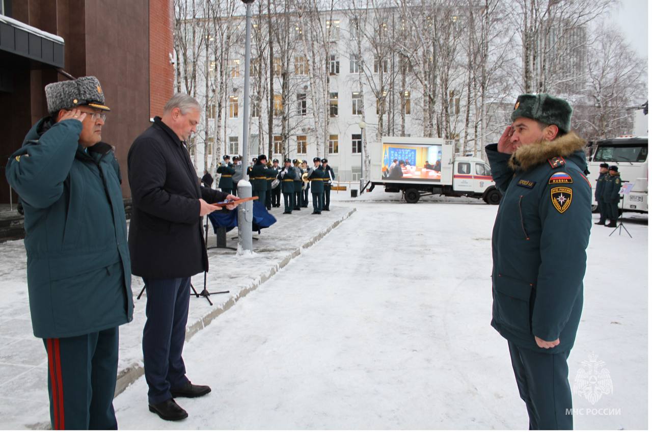 В торжественной церемонии приняли участие первый заместитель Губернатора Архангельской области – председатель Правительства региона Алексей Алсуфьев и начальник Главного управления МЧС России по Архангельской области Шахобиддин Ваккосов.
