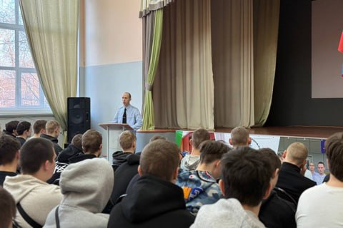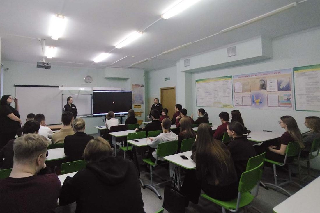 Совместно с курсантом Санкт-Петербургского университета МВД России Романом Стержневым, страж порядка побывал в гостях у учеников школы № 4. Он побеседовал с ребятами о важности для общества профессии полицейского, а Роман поделился впечатлениями об обучении в специализированном вузе.