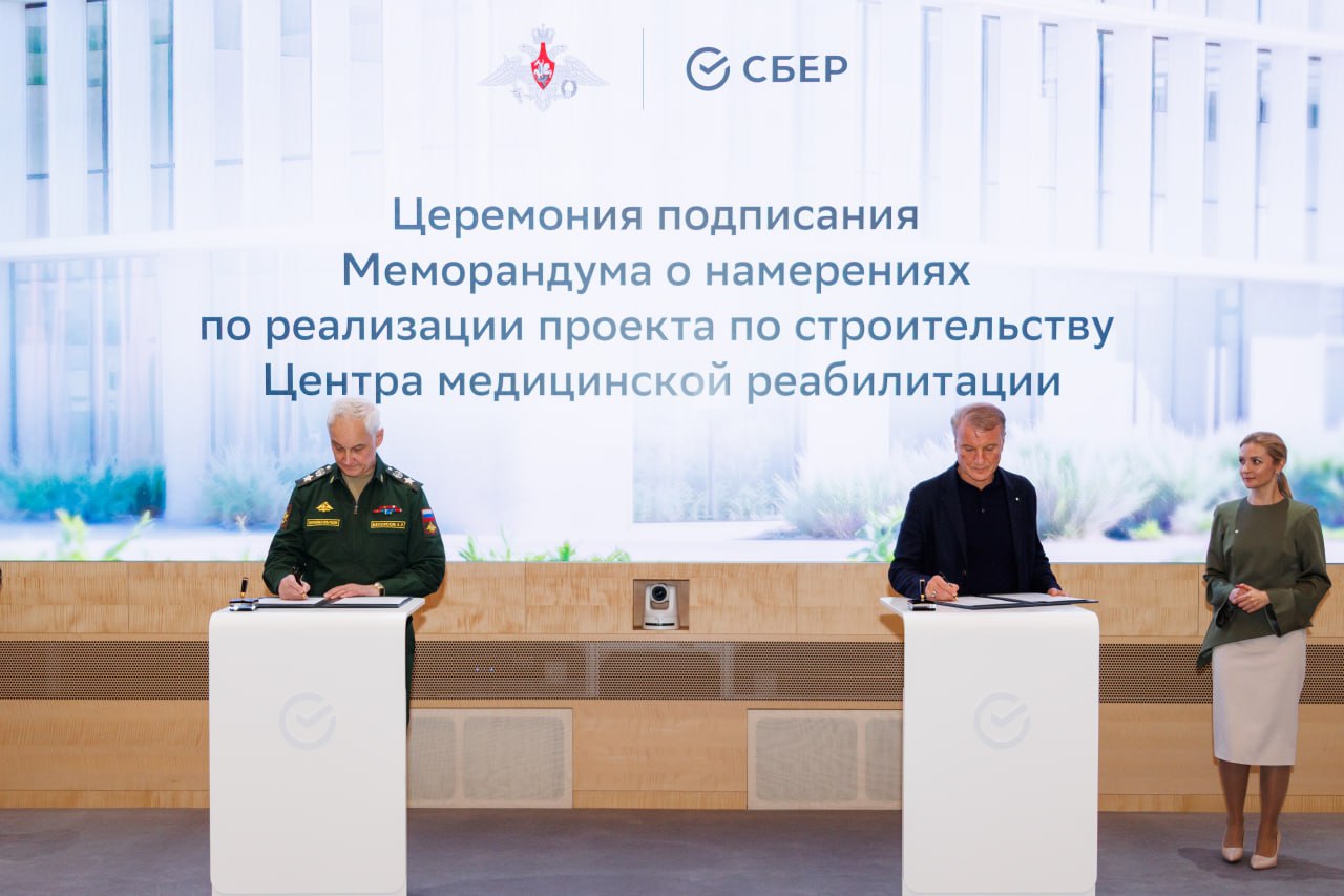 Меморандум о намерениях между Минобороны России и ПАО «Сбербанк» о строительстве нового Центра медицинской реабилитации на территории Национального медицинского исследовательского центра высоких медицинских технологий им. А.А. Вишневского.