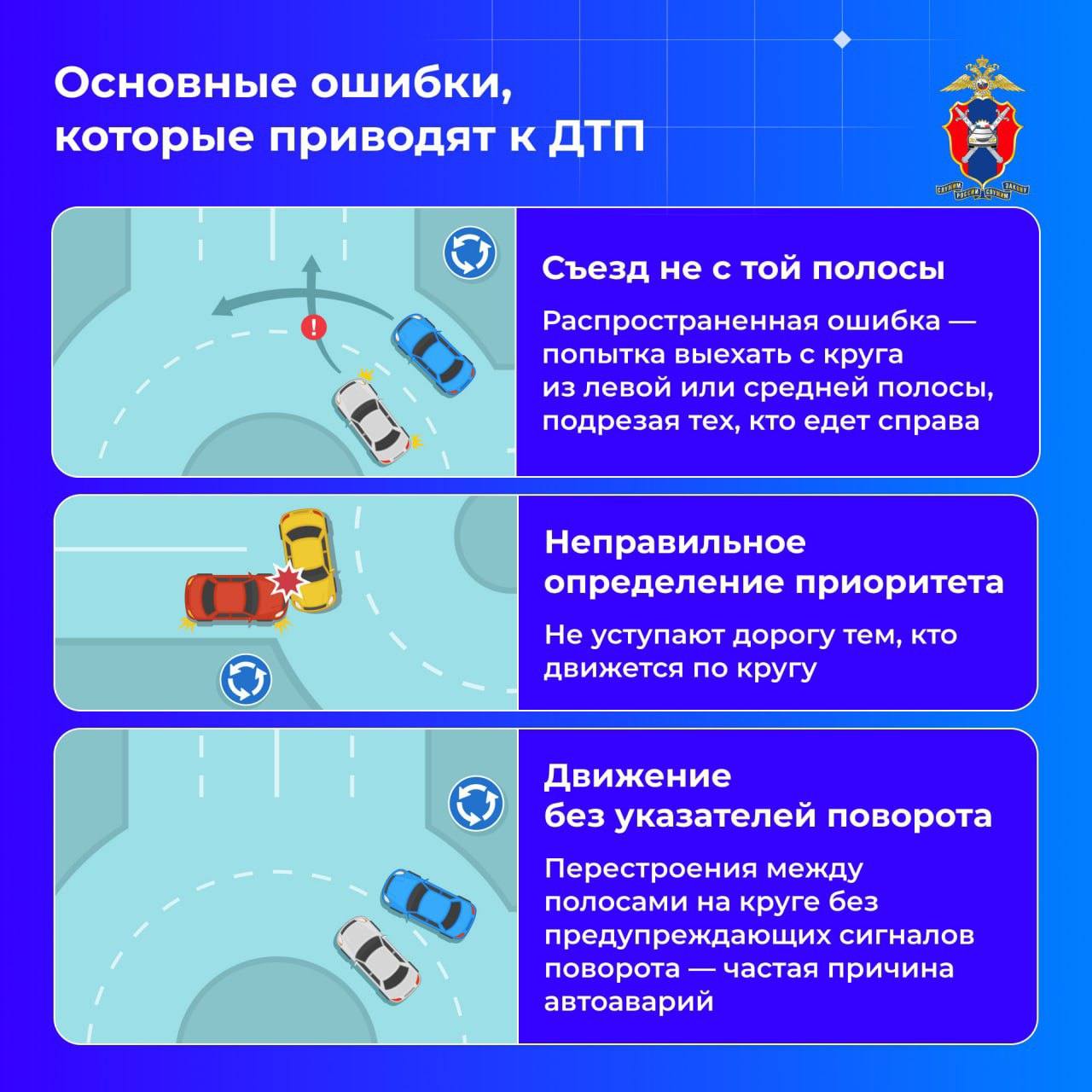 Госавтоинспекция подготовила карточки, где показаны главные правила и ошибки при круговом движении
