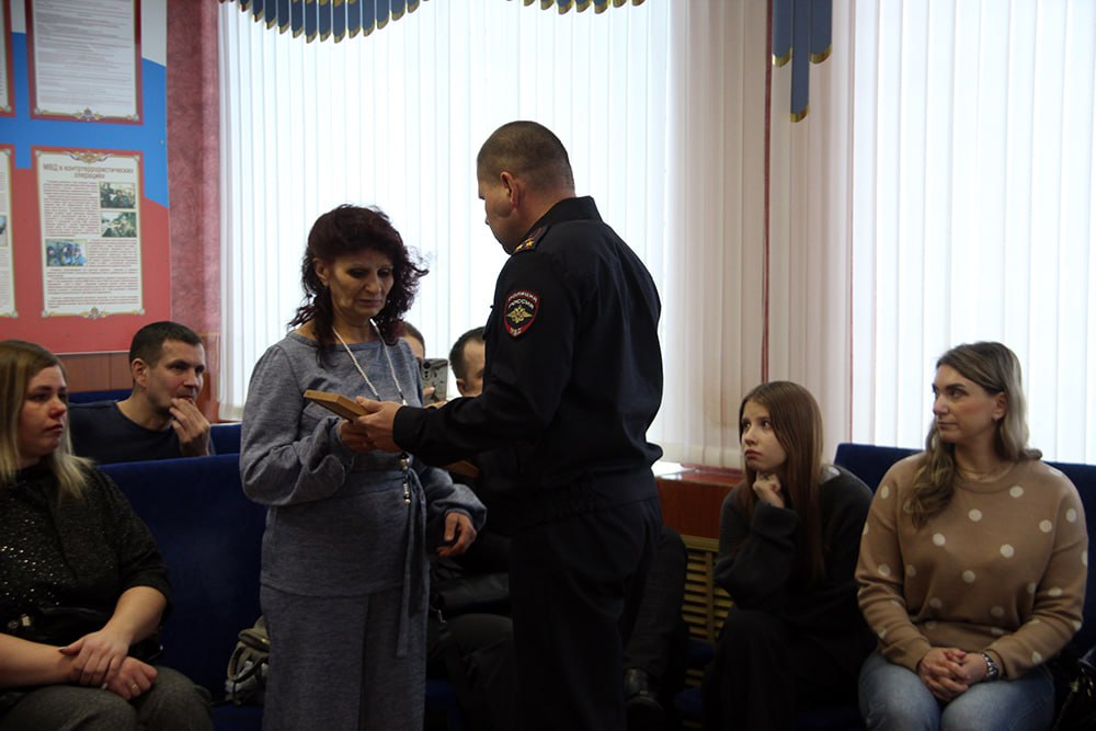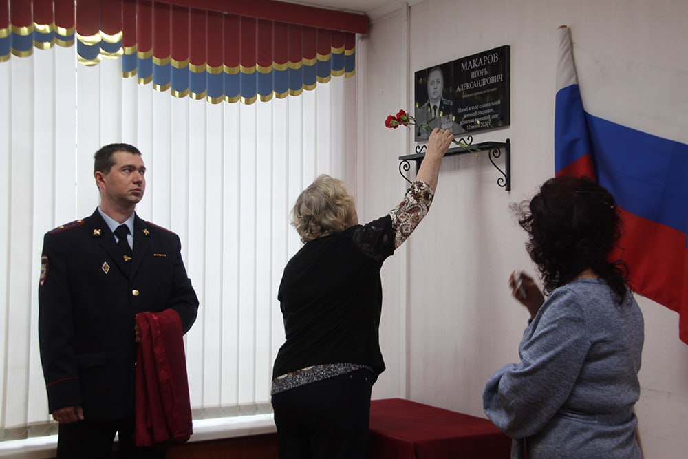 Честь открытия памятной доски была предоставлена командиру отдельного батальона ППСП Андрею Ушакову и маме Игоря Макарова Галине Николаевне.