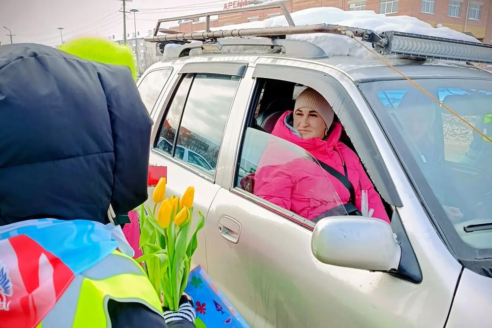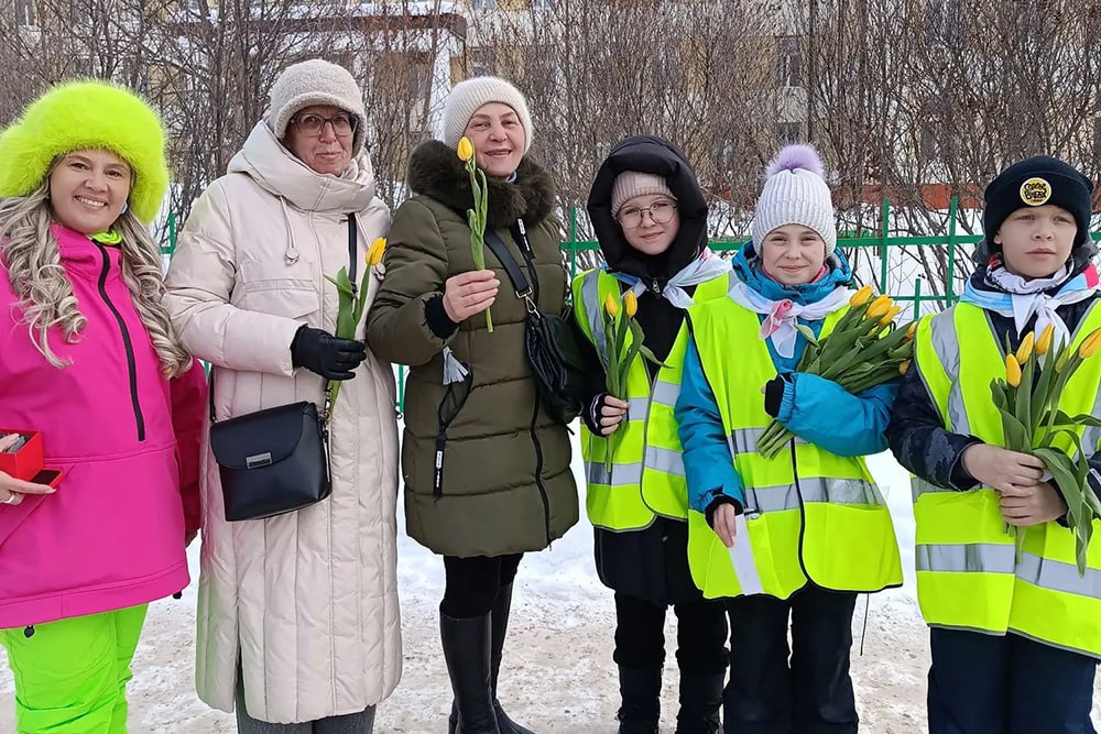 Сегодня сотрудники Госавтоинспекции межмуниципального отдела МВД России «Котласский» совместно с участниками отряда юных инспекторов дорожного движения городской школы №18 поздравили котлашанок с наступающим Международным женским днем.