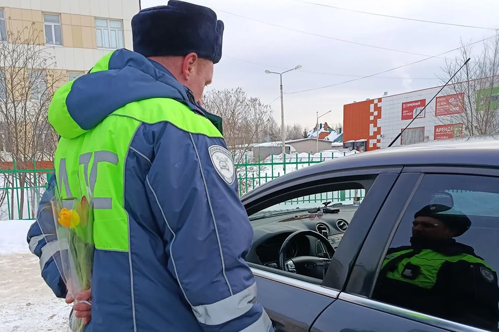 В Котласском округе стражи порядка приняли участие в акции «Цветы для автоледи»