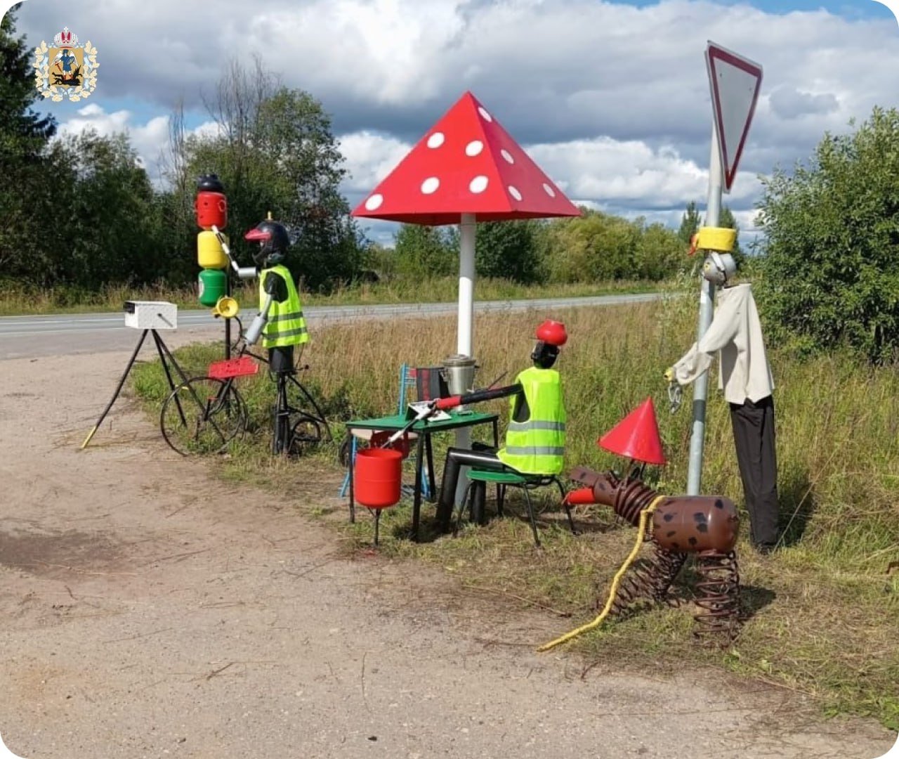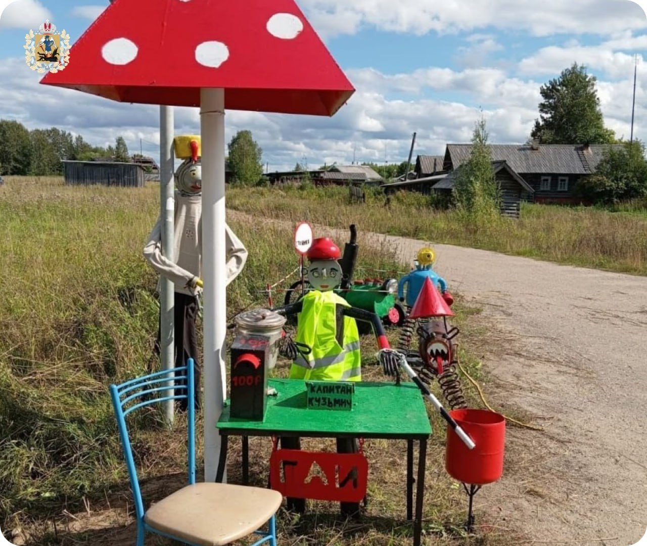Фигуры капитана Кузьмича и других героев, ранее временно демонтированные, вернулись на своё привычное место. Ремонт дороги завершён, и жители региона могут вновь насладиться остановкой у оригинального арт-объекта.