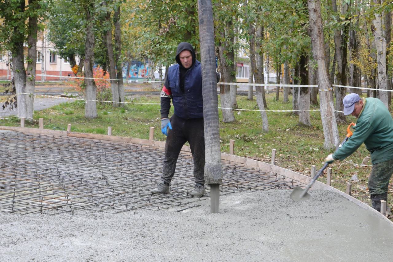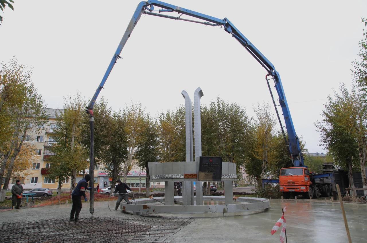 «Комфортное Поморье»: идут работы над флагманским проектом «Память о героях». На объекте работает подрядчик ООО «СК «Белое-море». Сейчас завершается армирование и бетонирование основания памятника – круглой площадки, на которую в дальнейшем уложат гранитную плиту.