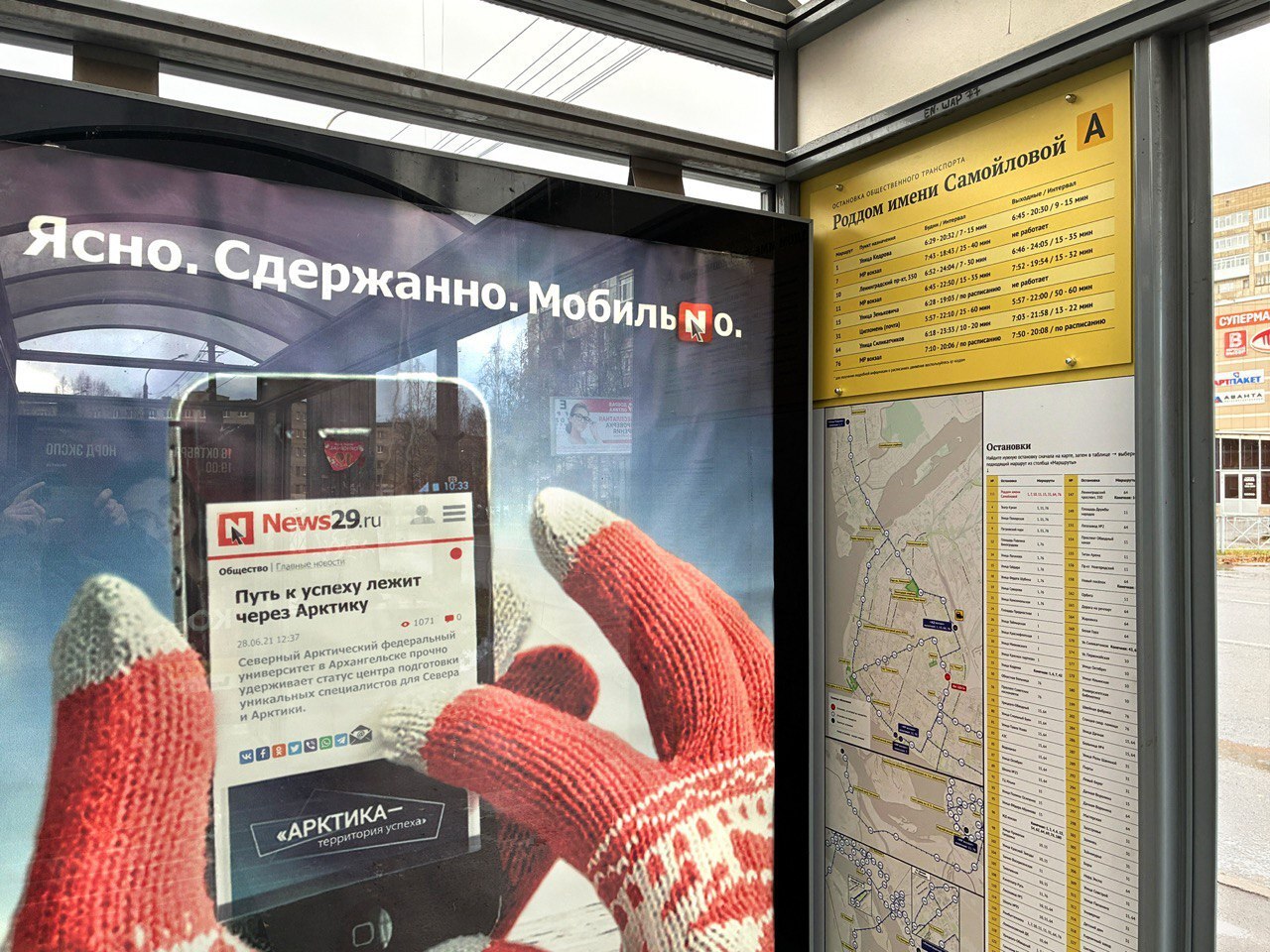 В Архангельске продолжается оборудование остановок "автобусной навигацией"