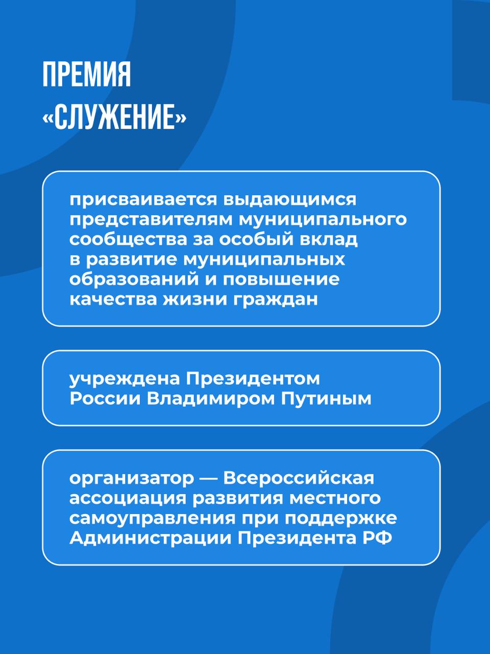 Стартовал прием заявок на III Всероссийскую муниципальную премию «Служение»