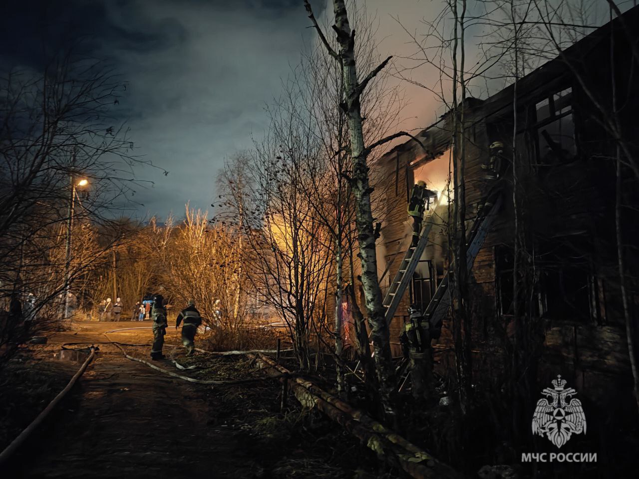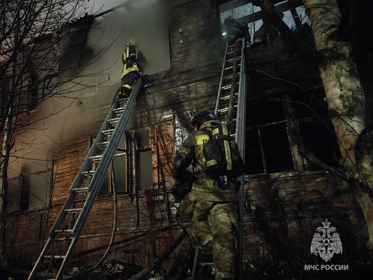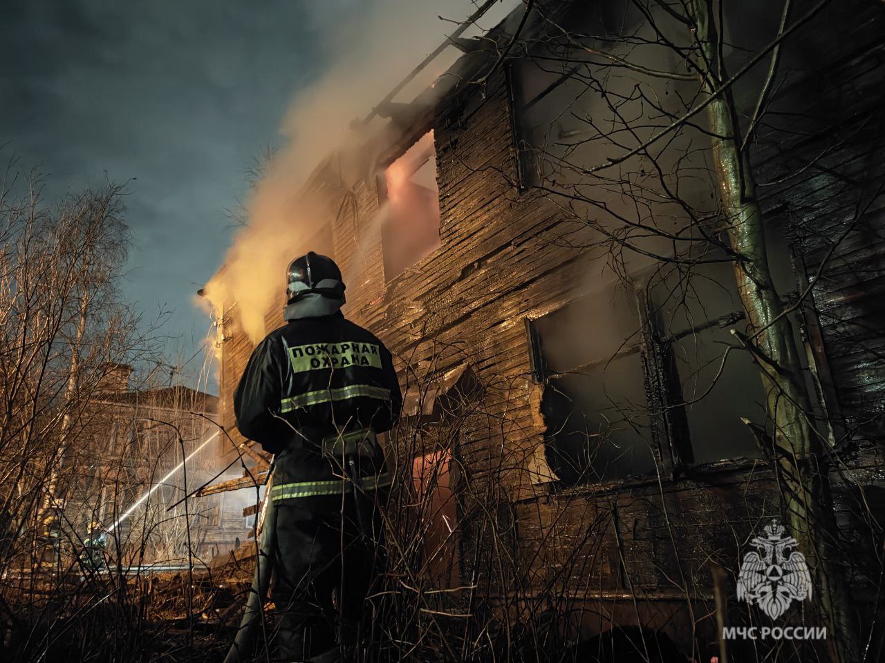 Крупный пожар в Архангельске - горит деревянный дом на улице Шабалина