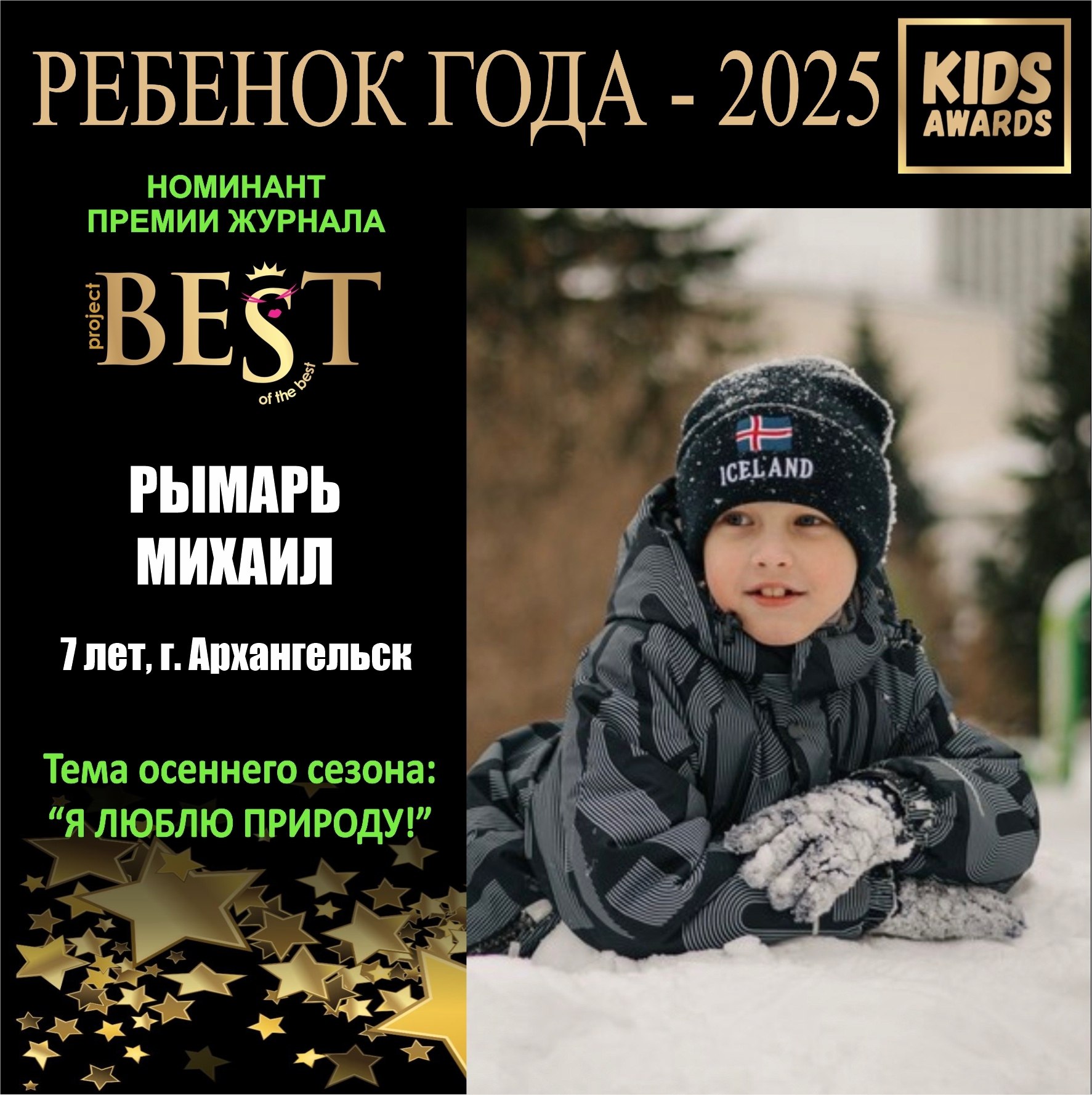 Детскую премию учредил журнал «BEST kids». Тема осеннего сезона фотоконкурса звучала так: «Я люблю природу!»