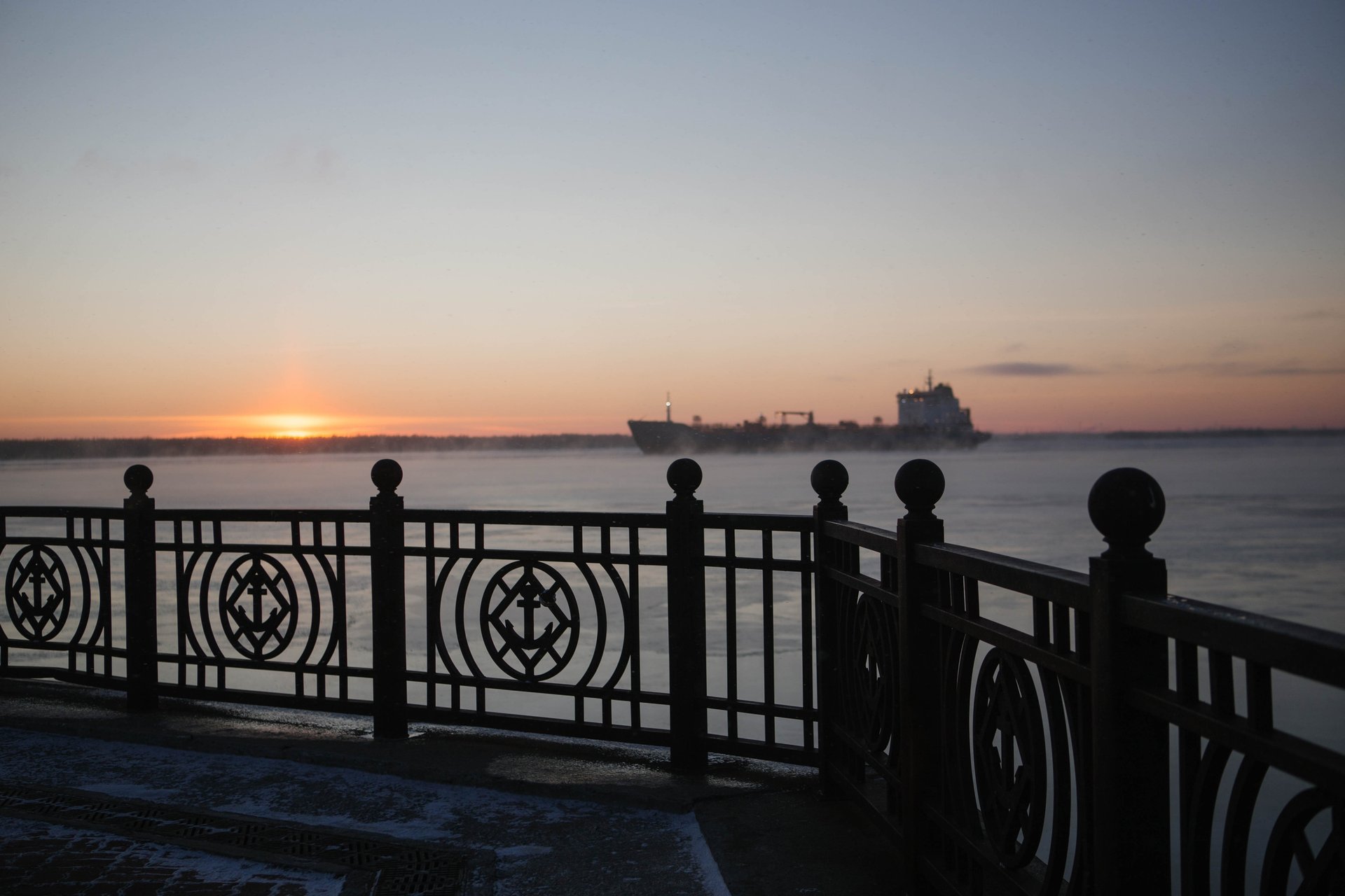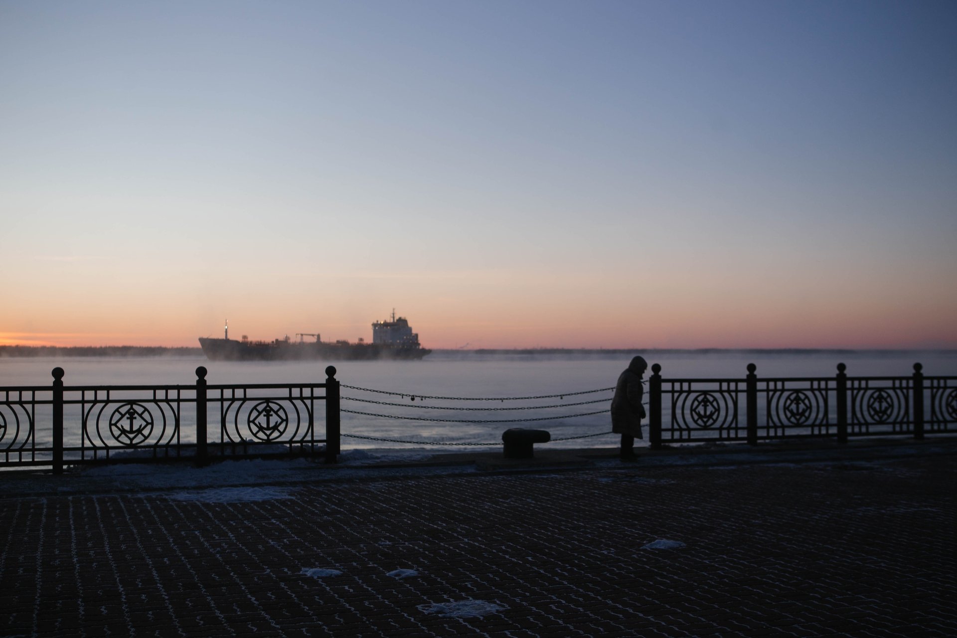 — Провожала солнышко спать, застыв от восторга (и от холода). Ветер сплел дивное кружево из клубящегося над водой пара и легкой, колкой метели, — написала на своей странице автор этих фотографий Саша Чекрыжова.