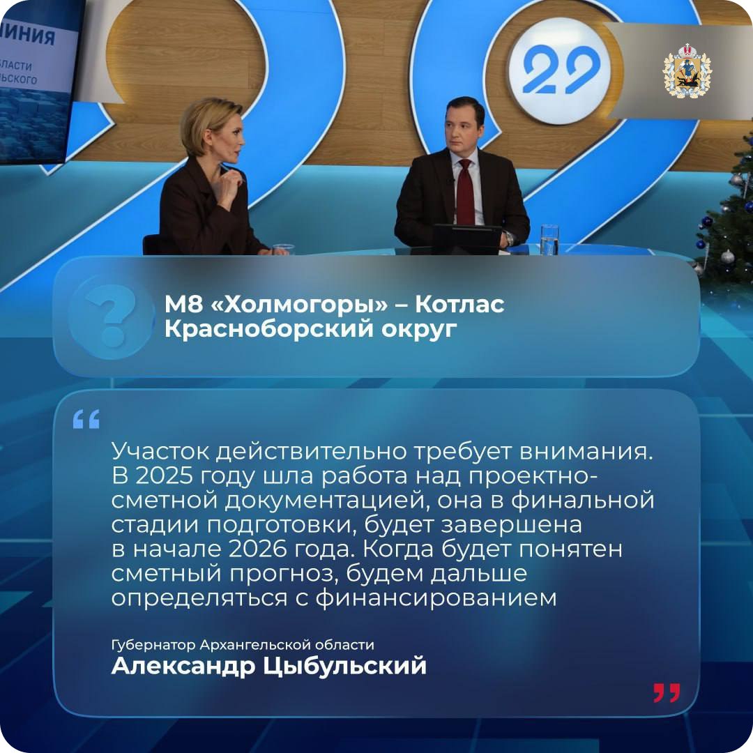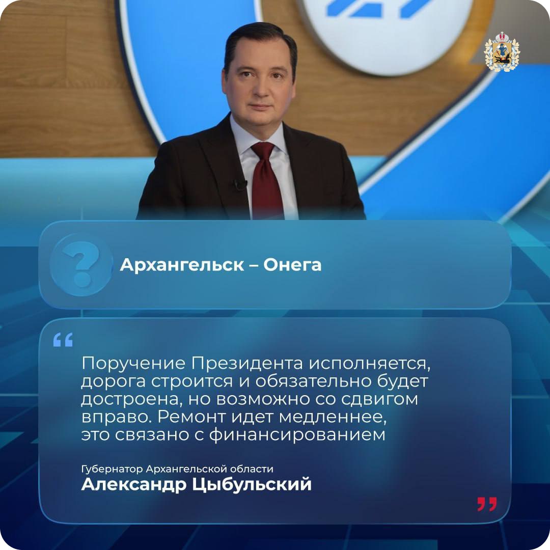 Вопрос ремонта дорог снова стал одним из самых популярных у жителей во время общения с губернатором. Александр Цыбульский рассказал о ходе работ на трассах: М-8 «Холмогоры — Котлас» и «Архангельск — Онега».