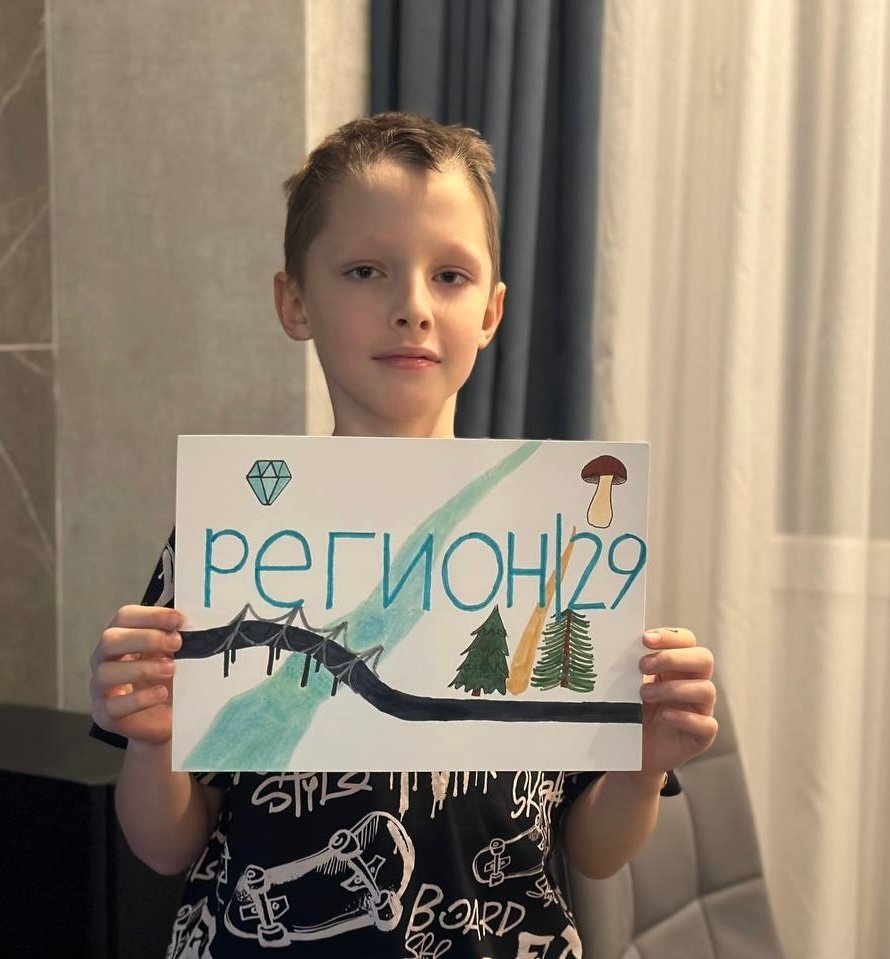 Знакомьтесь — это юный художник Лев из Архангельска. Именно он подготовил плакат на прямую линию с президентом Владимиром Путиным. Прямо сейчас на большой встрече с главой государства находится наш коллега — корреспондент телеканала «Регион29» Александр Богданович.
