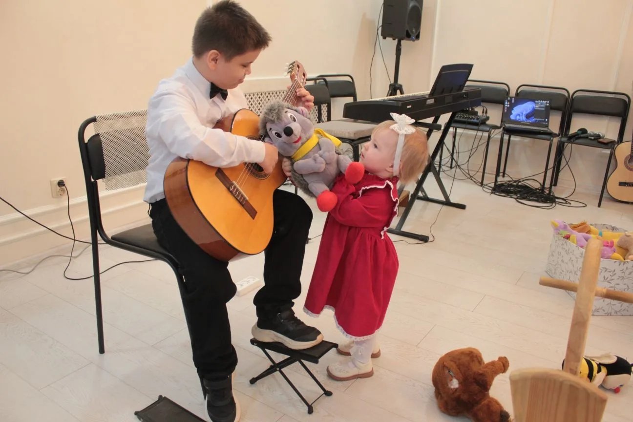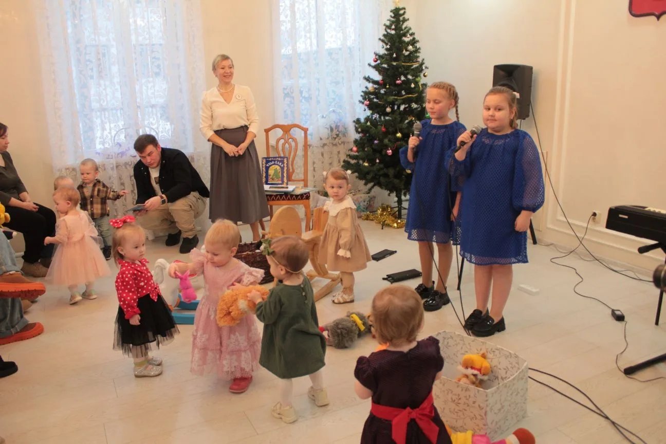Центральным украшением стал новогодняя ёлка — дети с восторгом разглядывали игрушки, а некоторые даже пытались дотянуться до самых высоких шаров, будто стараясь поймать частицу волшебства.