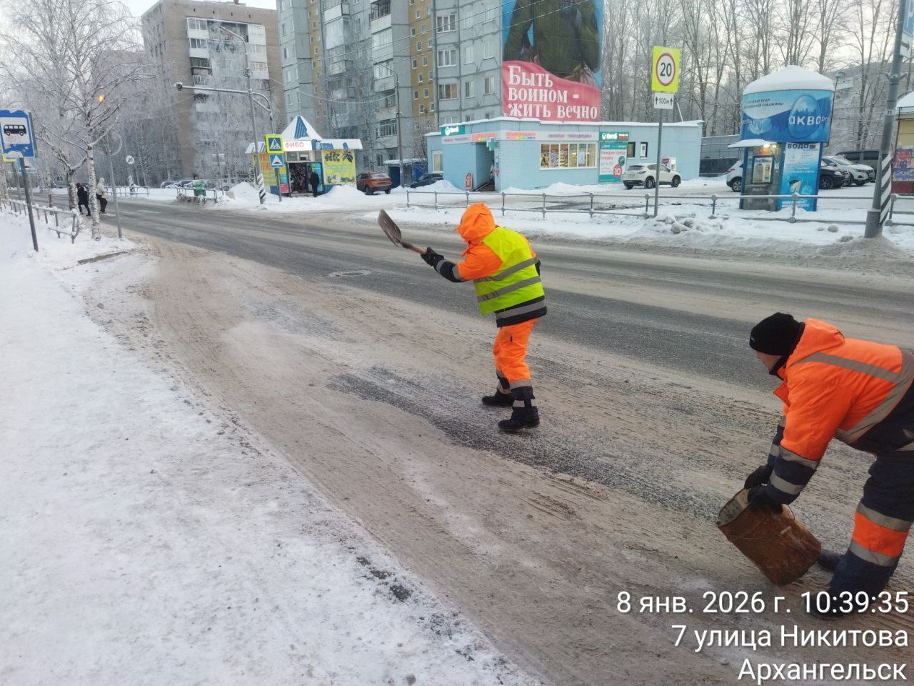 Напоминаем, что по вопросам, касающимся уборки улично-дорожной сети г. Архангельска, просьба звонить по номерам круглосуточной диспетчерской службы: