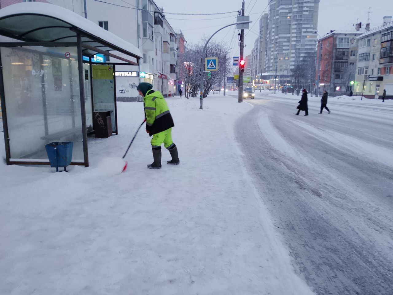 МДУ продолжает уборку улиц и тротуаров, вывоз снега на полигоны, а также противогололедные мероприятия. Особое внимание уделяется очистке остановок общественного транспорта и пешеходных переходов.