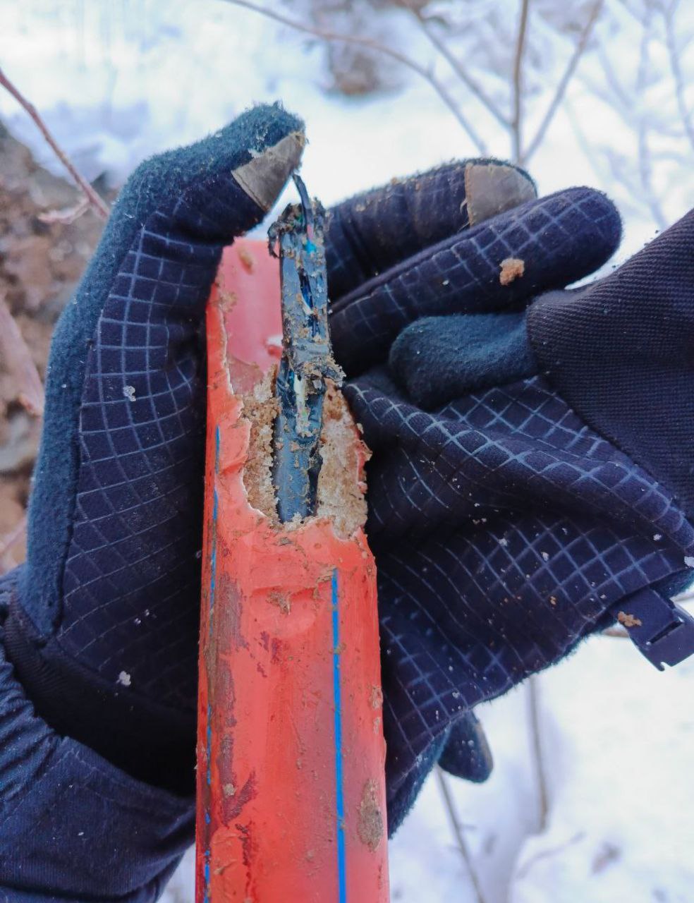 Аварийные бригады оперативно выехали на место. Место обрыва нашли в подземном ручье возле реки Сюмы. Для восстановления связи проложили 110 метров нового кабеля. На время работ использовали резервный канал.