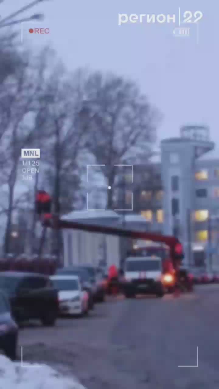 Видео дня: в Архангельске демонтируют новогодние украшения