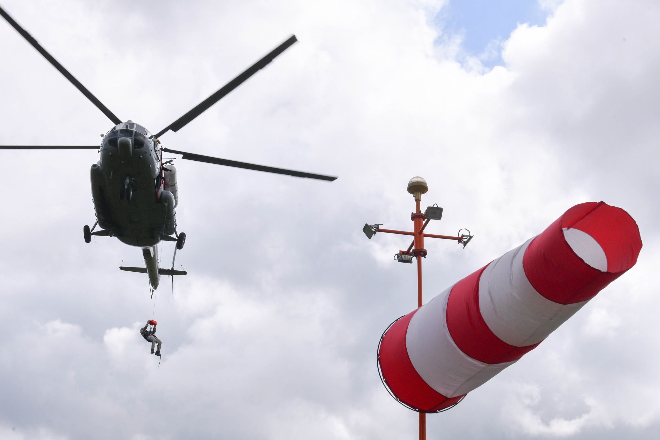 Тренировка по подготовке к действиям при эвакуации на борт вертолёта.