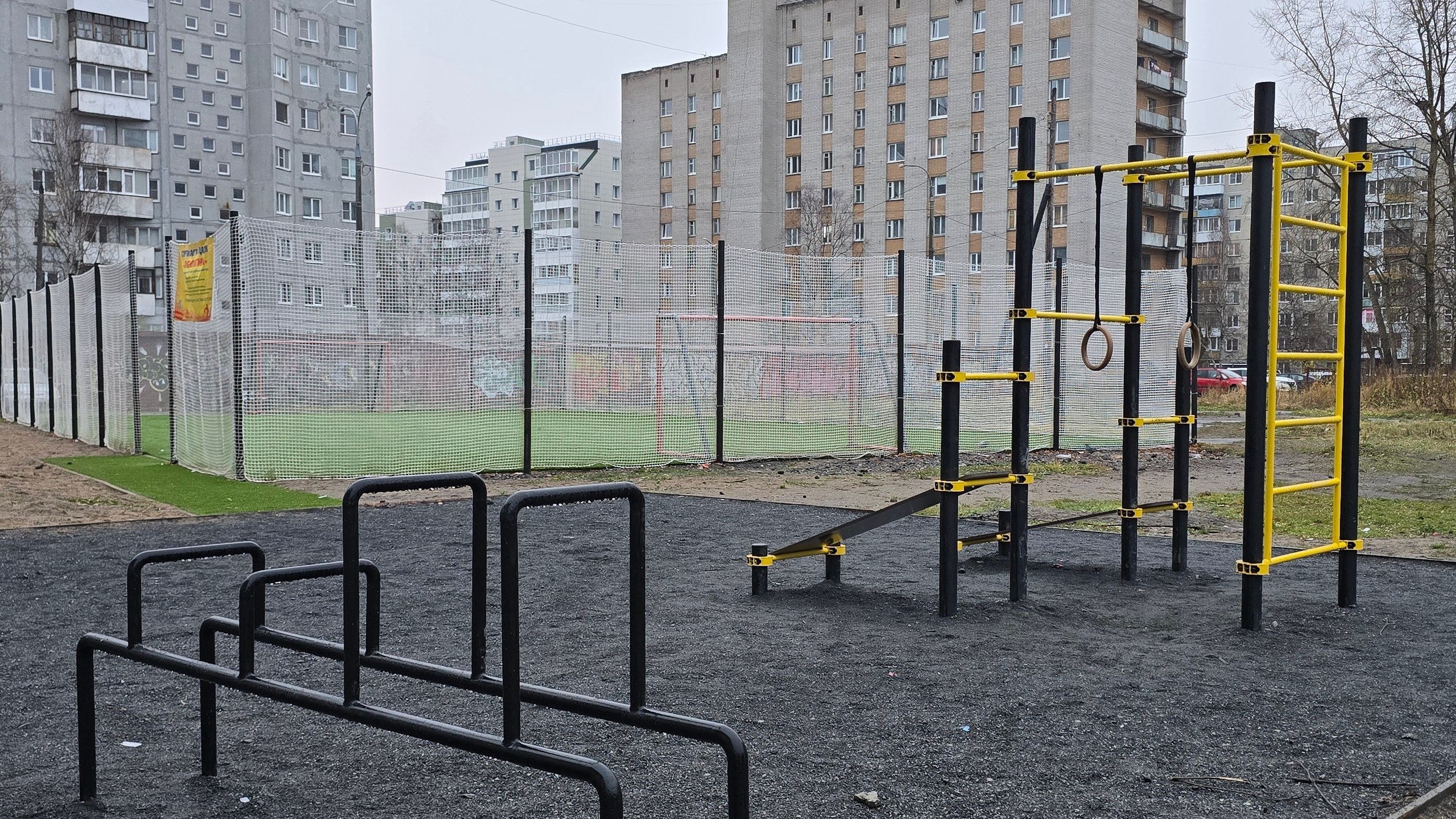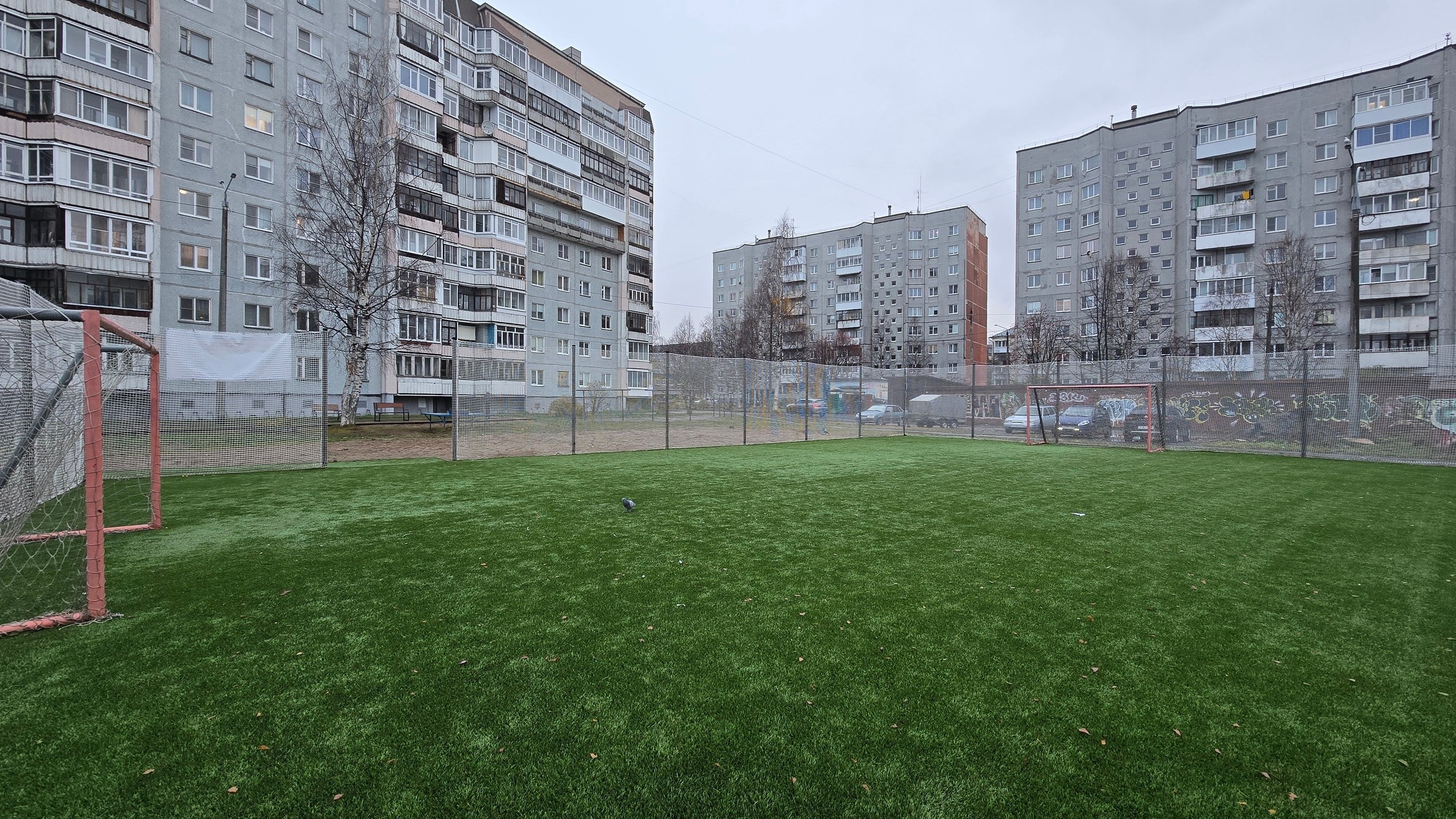 Во дворе дома на пр. Ломоносова, 282/1 воплощен в жизнь проект «Моя Галактика» в рамках губернаторской программы «Комфортное Поморье». Здесь обустроено футбольное поле с искусственным покрытием и ограждением, площадка для воркаута, зона отдыха.