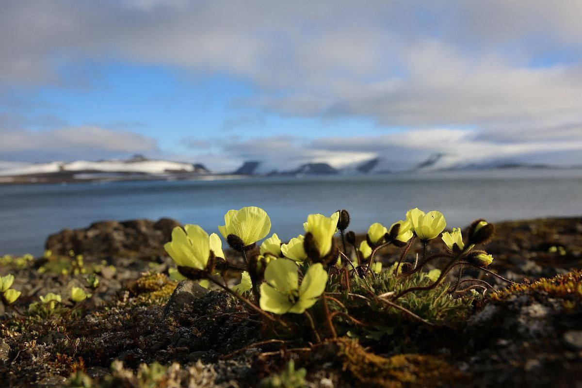 Растительность здесь скромная, состоящая в основном из мхов и лишайников. Летом в некоторых районах цветут арктические маки и саксифраги. Многие виды флоры и фауны парка включены в Красную книгу МСОП и Красную книгу России.