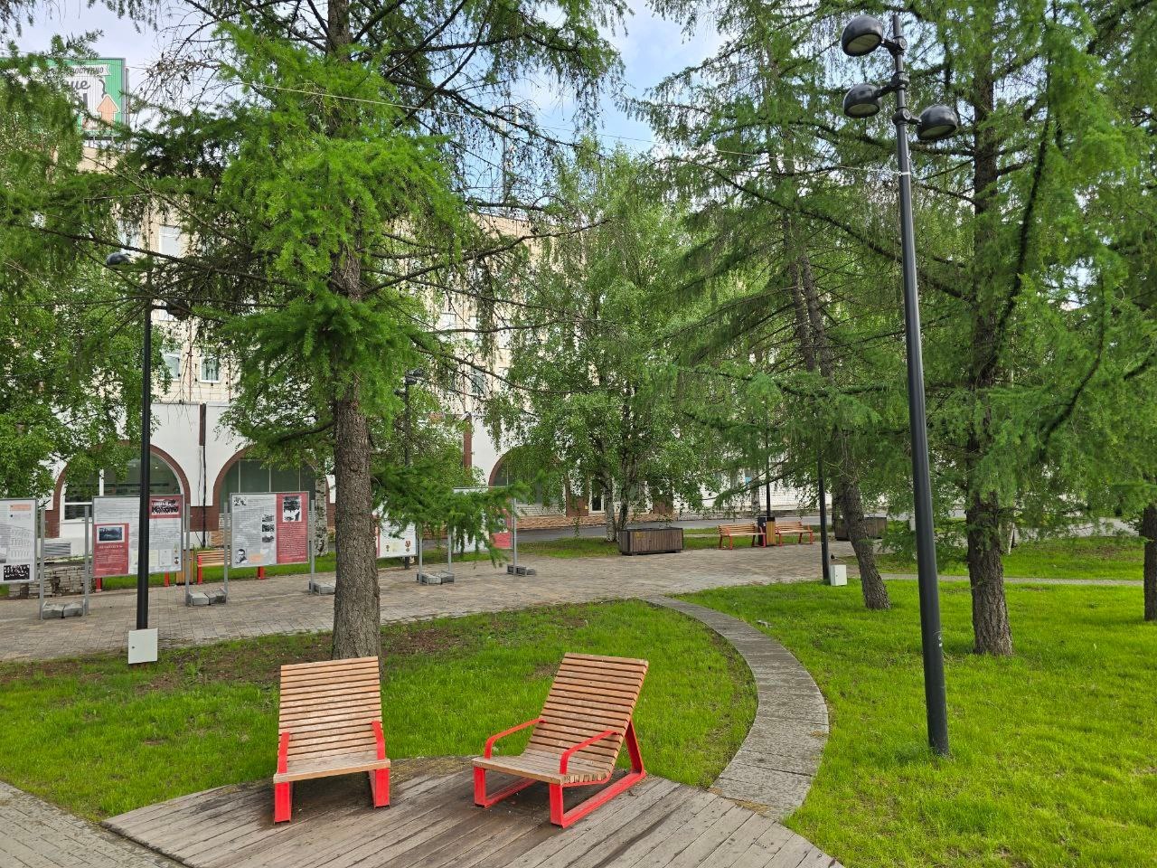 Речь идёт о сквере, благоустроенном в 2023 году. Рядом находится Музей художественного освоения Арктики имени А.А. Борисова, и его сотрудники уже активно используют обновлённое общественное пространство.