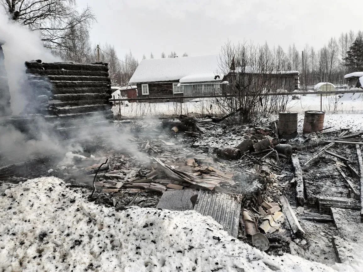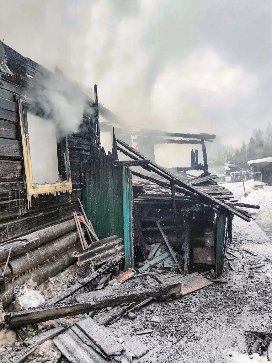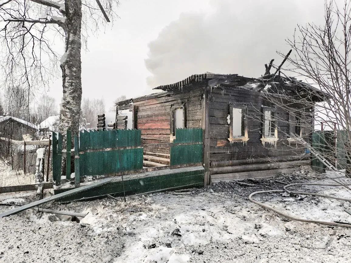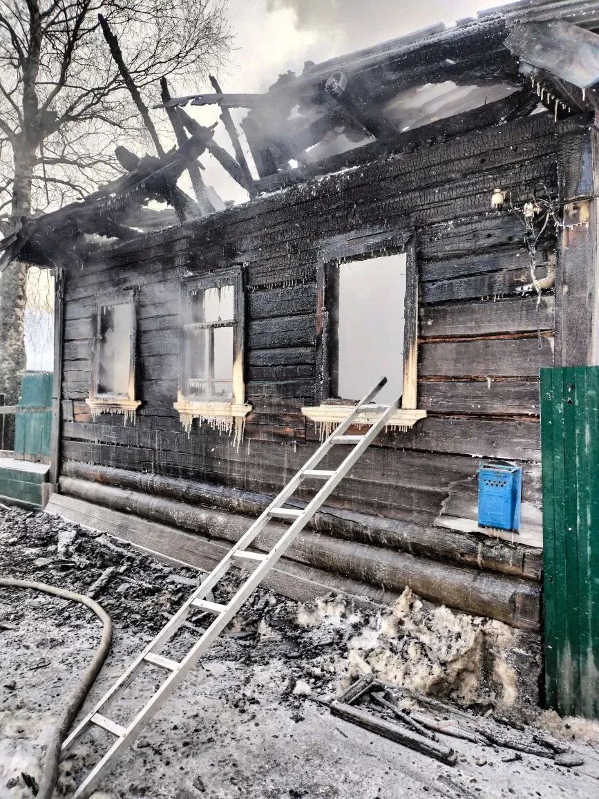 Дом значительно повреждён огнём по всей площади. Причина возгорания устанавливается.