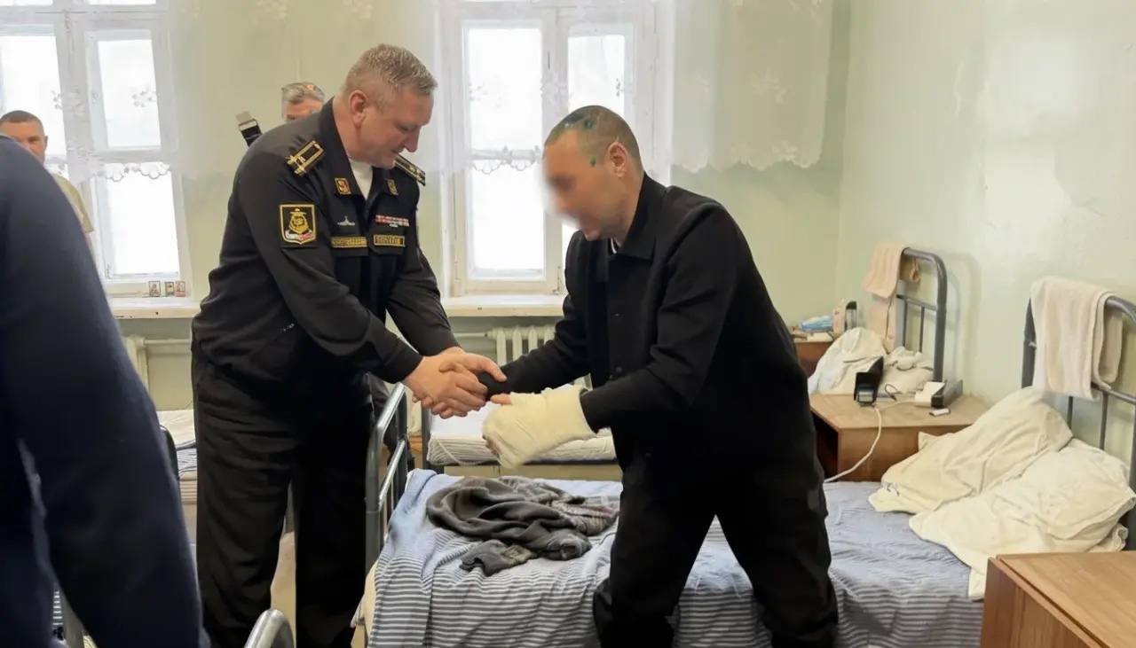 После торжественного митинга вместе с начальником штаба Краснознамённой Беломорской военно-морской базы, капитаном 1 ранга Романом Валерьевичем Государевым посетил наш военный госпиталь. Атмосфера здесь особенная — тишина палат наполнена тихой силой и надеждой. Лечатся около 60 участников специальной военной операции со всех концов России: из соседних Архангельска, Коми, Вологды, с Дальнего Востока — Хабаровского края, Сахалина, и с Урала — Екатеринбурга и Ханты-Мансийска. От Белого моря до Тихого океана — единый русский дух, сплоченный общей целью.
