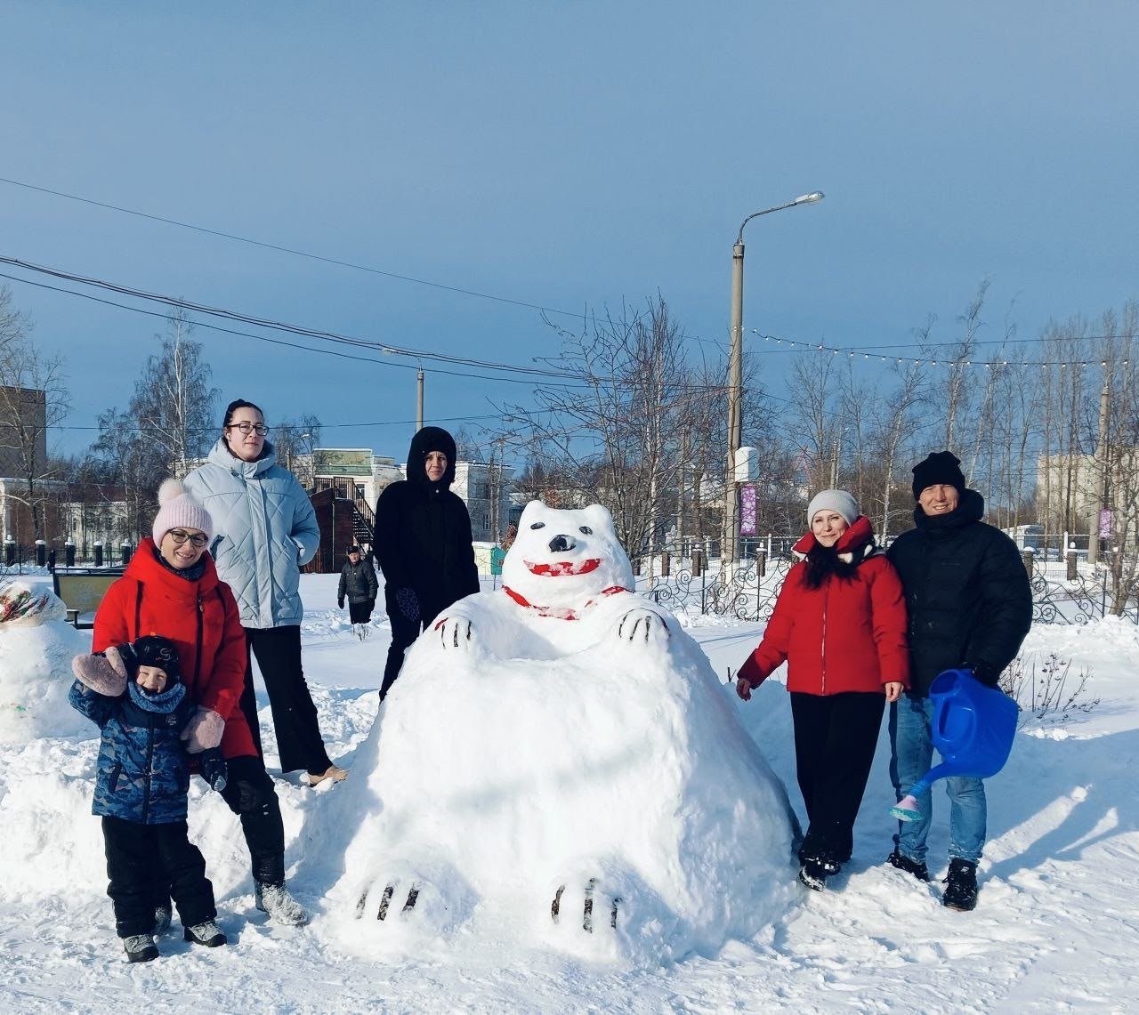 В конкурсе «Снежные фигуры–2026» первого места удостоена снежная композиция «Северный русский народный хор» (изготовила Ольга Юрьева и её семья).
