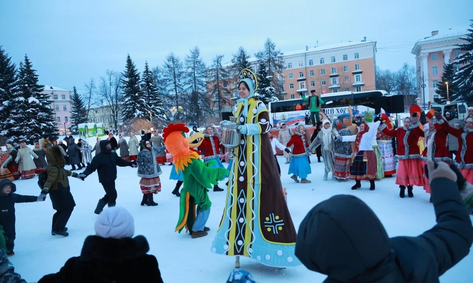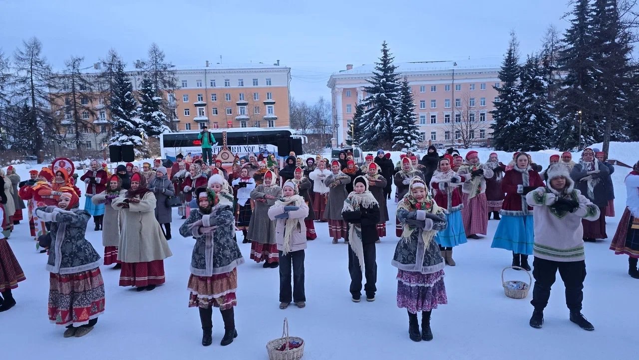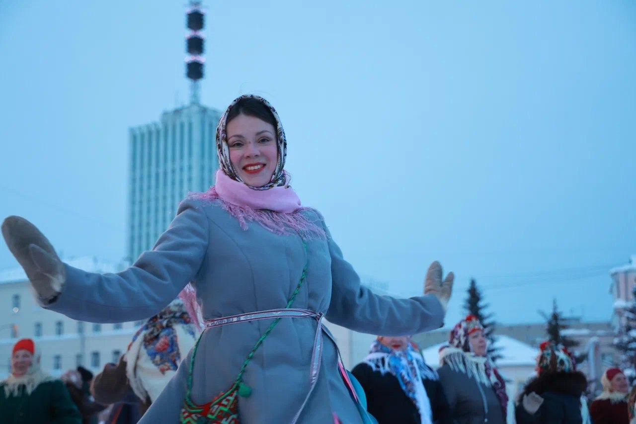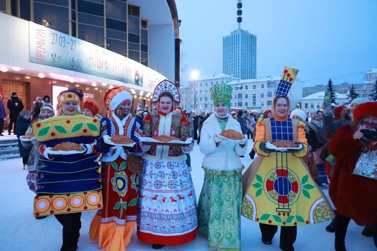 Северный хор поздравил женщин Архангельска с 8 марта хороводами и караваем