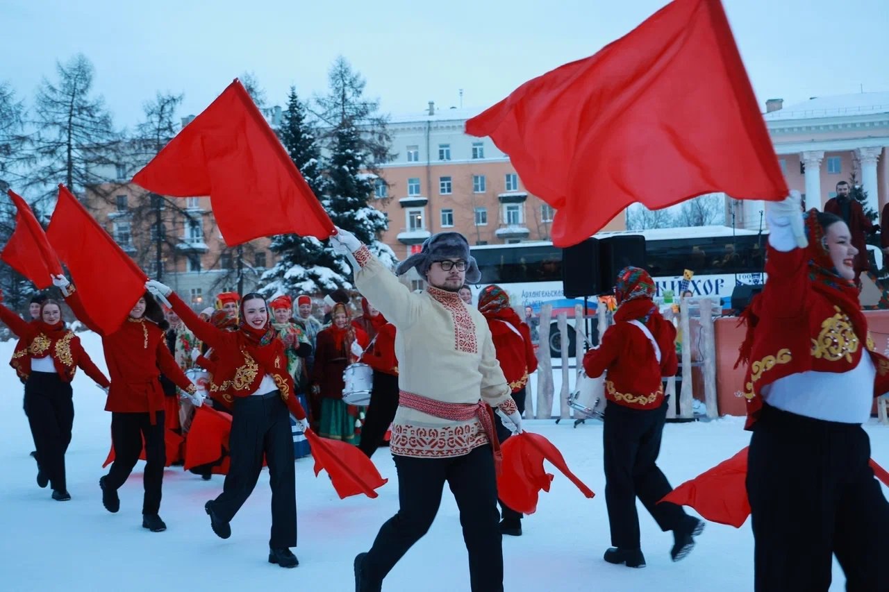 В Международный женский день Государственный академический Северный русский народный хор выступил с праздничной программой у Архангельского театра драмы. Артисты водили хороводы, пели песни, плясали и угощали горожанок караваем. Программа получилась весёлой и зажигательной.