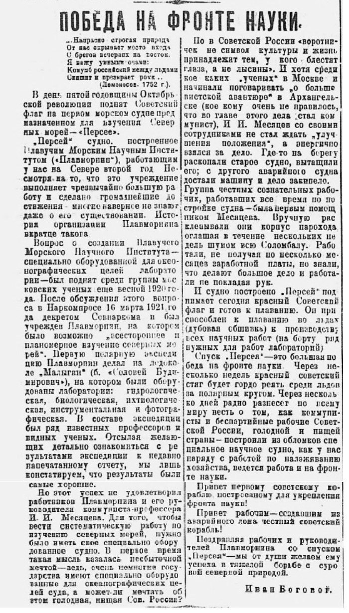 105 лет назад, 10 марта 1921 года, Председатель Совета Народных комиссаров РСФСР В.И. Ленин подписал «Декрет об учреждении Плавучего Морского научного института для изучения Северного Ледовитого океана с его морями, устьями рек, островами и прилегающими к нему побережьями Европы и Азии» сокращенно - «Плавморниин».