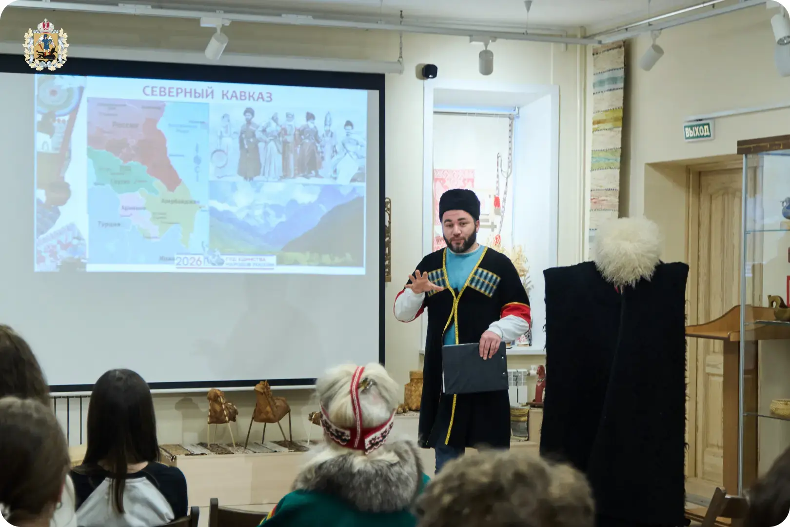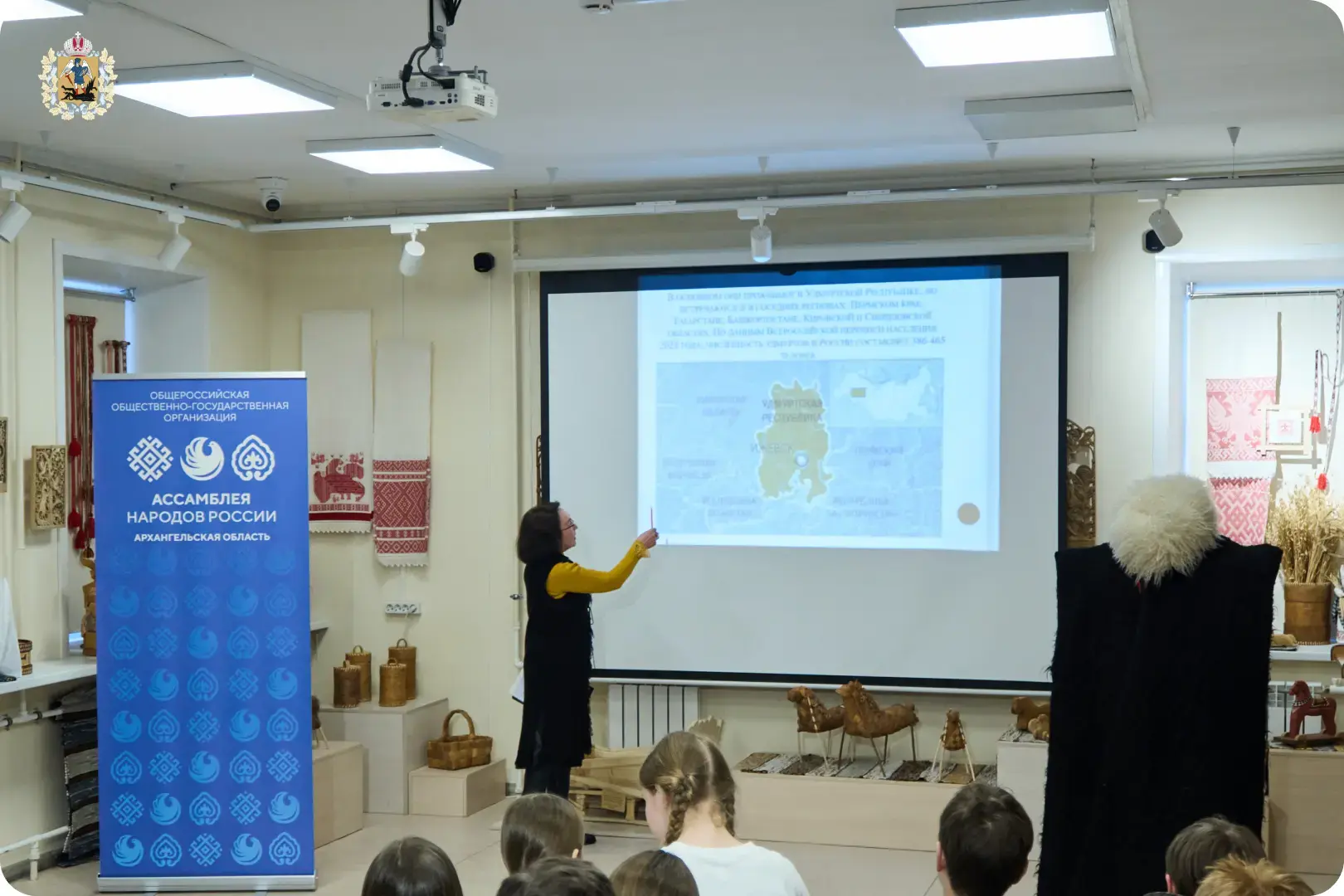 Для участников провели интерактивный урок с песнями, танцами, примеркой элементов национальных костюмов, знакомством с предметами быта и искусства. Такие встречи помогают укреплять межнациональный мир, дают возможность узнать свои корни и лучше понять соседей. В ближайшие дни подобные уроки пройдут и в других школах Поморья.