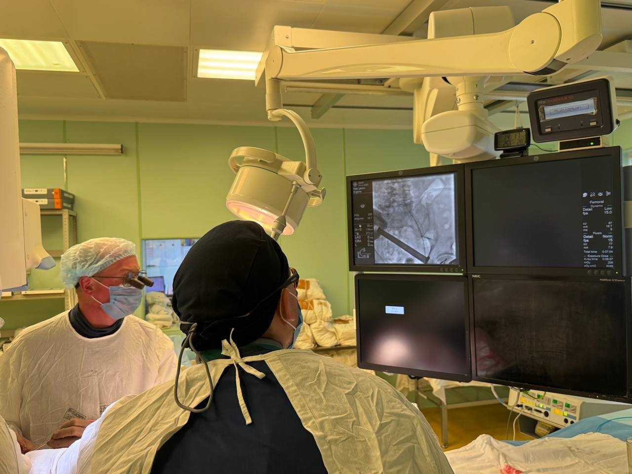 Через небольшой разрез специалисты убрали бляшку, а затем, под контролем ангиографа, завели в подвздошные артерии специальный катетер с баллончиком и удалили все тромбы.