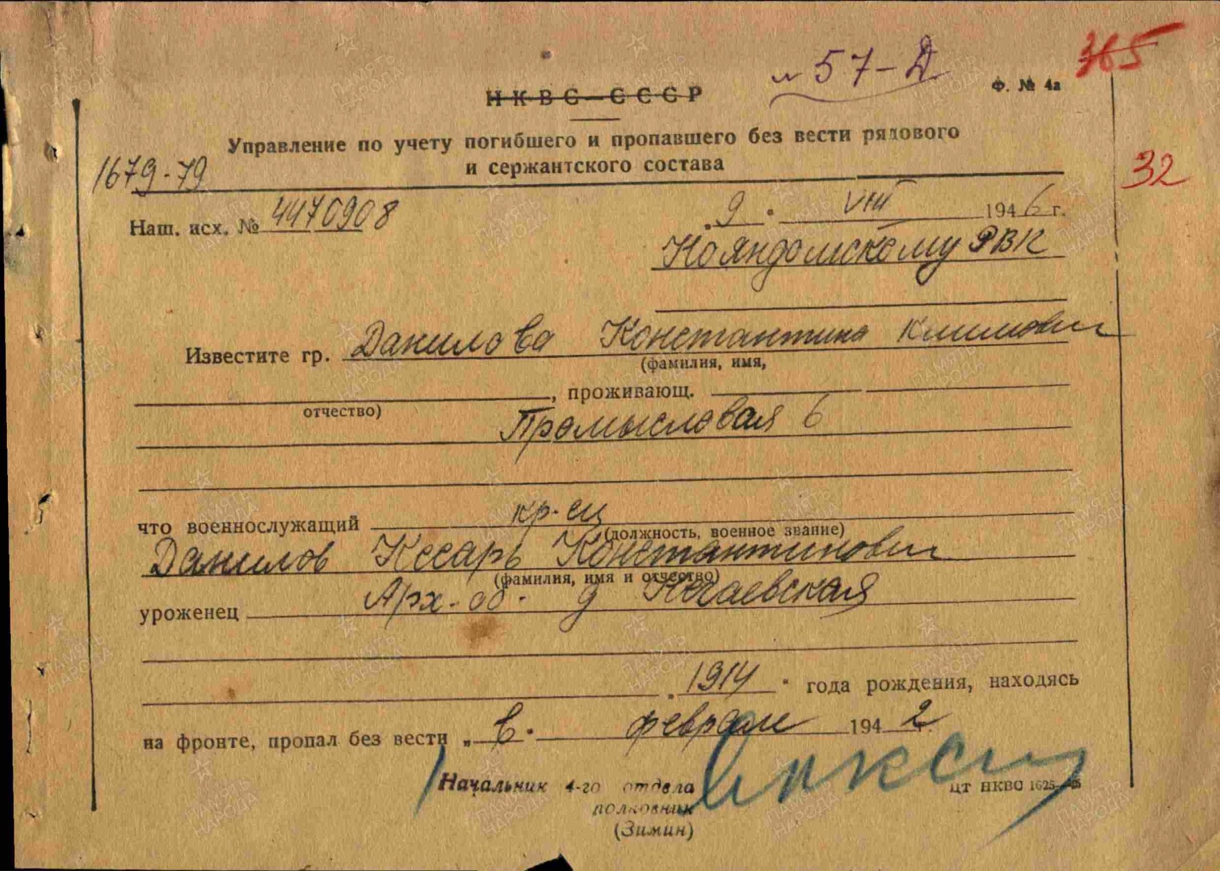 Любую информацию о семье Данилова Кесаря Константиновича можно сообщить по ссылкам: