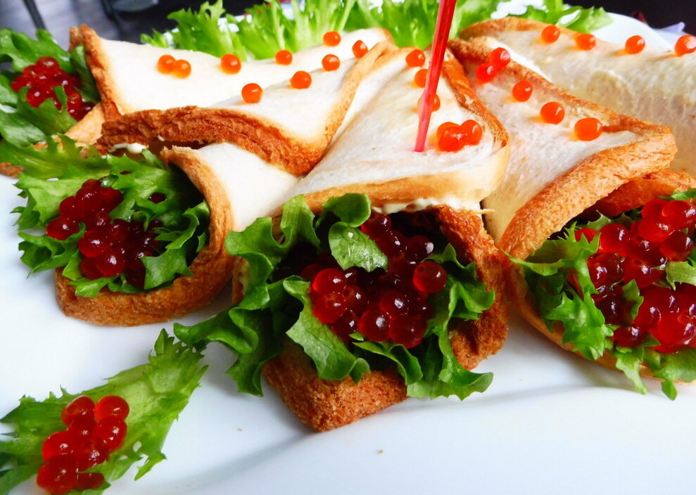 Процесс создания этих рулетиков предельно прост. Сначала каждый кусок хлеба следует раскатать до нужной толщины. Затем просто смазывается майонезом с перепелиными яйцами, что добавляет блюду уникальный вкусовой акцент. На край каждого кусочка укладывается немного свежего салата 'Фриллис', после чего хлеб аккуратно сворачивается в рулет. В середину помещается красная икра, которая придаёт блюду яркий цвет и насыщенный вкус.