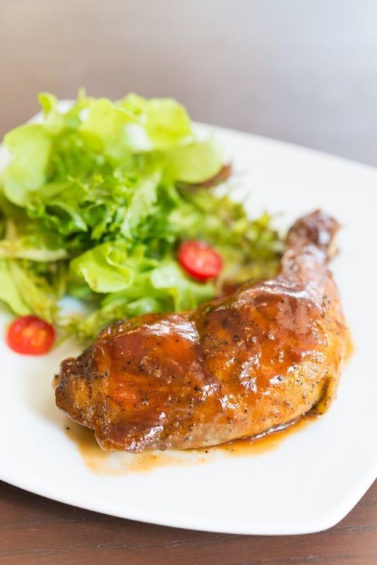 К концу готовки соус должен немного увариться, оставляя окорочка лишь наполовину погруженными в ароматную массу, насыщая их вкусом.