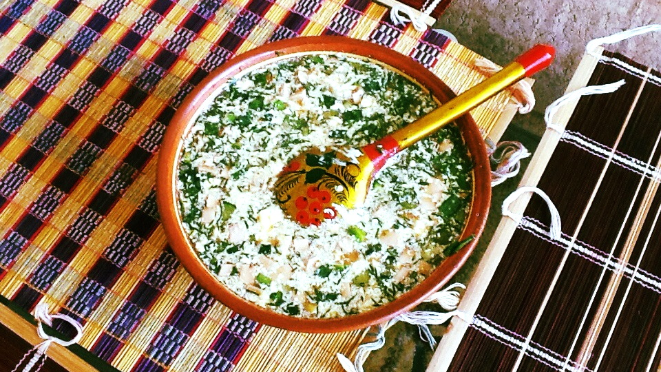 «Очень хорошо вошла корейская кухня в нашу судьбу. Для заправки понадобятся вода, соевый соус, немного уксуса, соль, сахар. Тоже очень вкусный вариант заправки для окрошки».