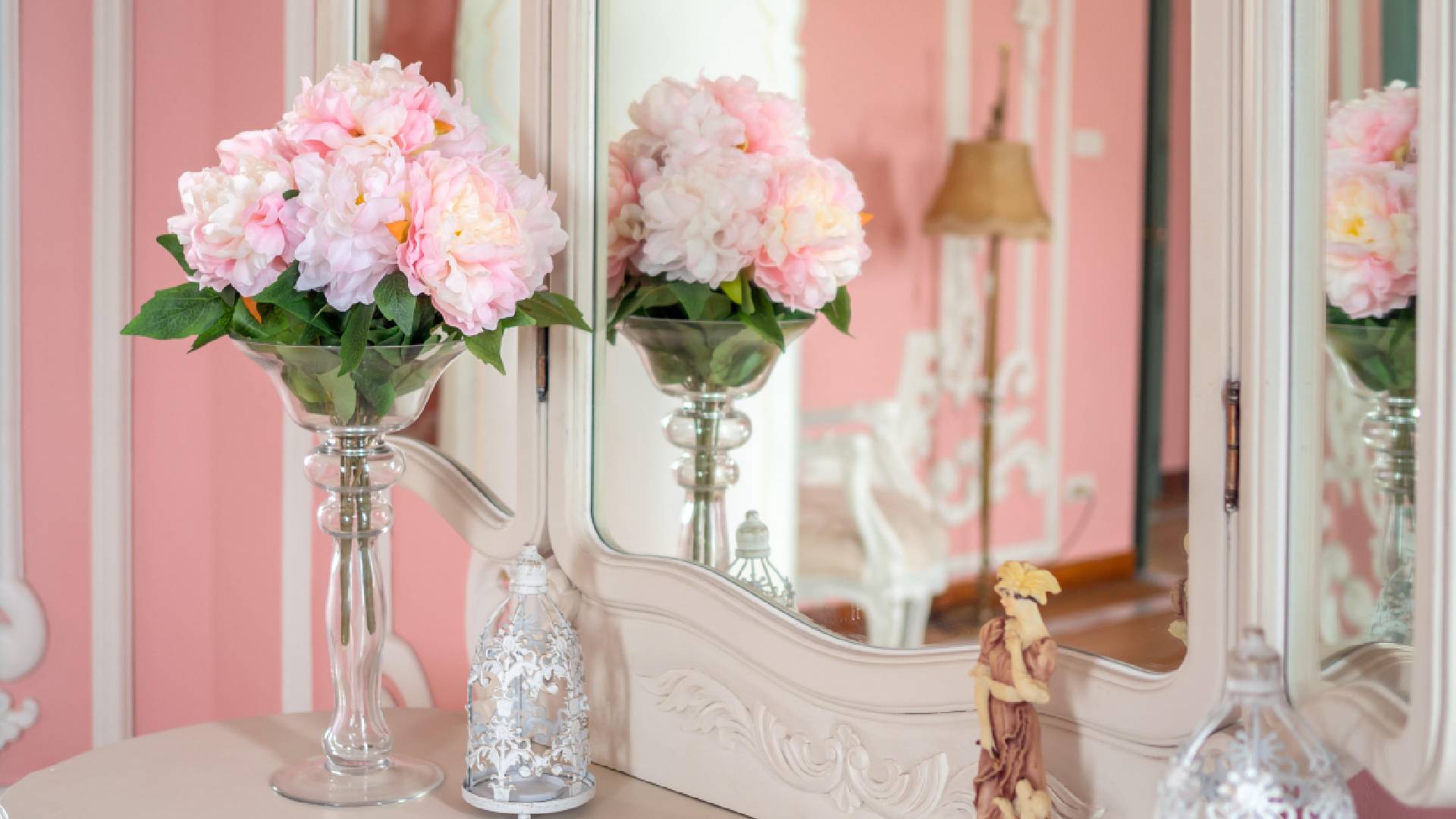 Изящный букет из искусственных цветов украсит туалетныи? столик в спальне. Он легко заменит живые растения, особенно если у кого-то из членов семьи есть аллергия.