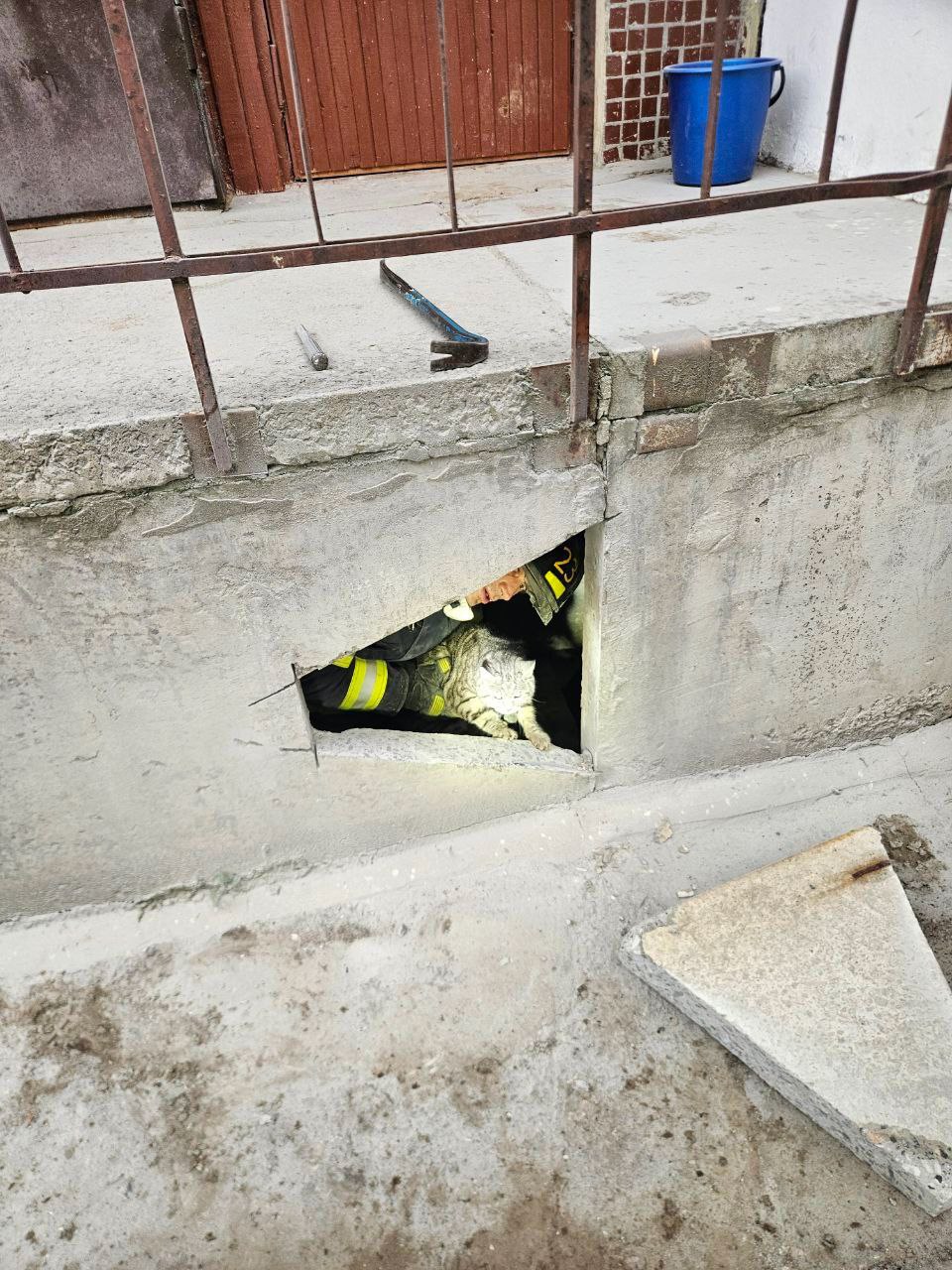 В Северодвинске спасатели извлекли кота из бетонной ловушки