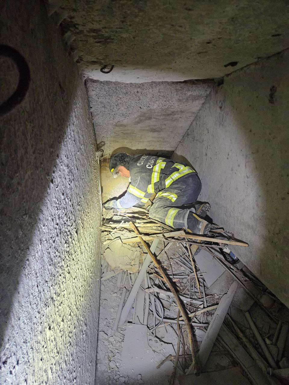 Прибывшие на место спасатели, с разрешения представителей управляющей организации, при помощи бензореза сделали технологическое отверстие в бетонной плите, в которое спасатель смог проникнуть и достать кота. Кот был передан заявителям в целости и сохранности.