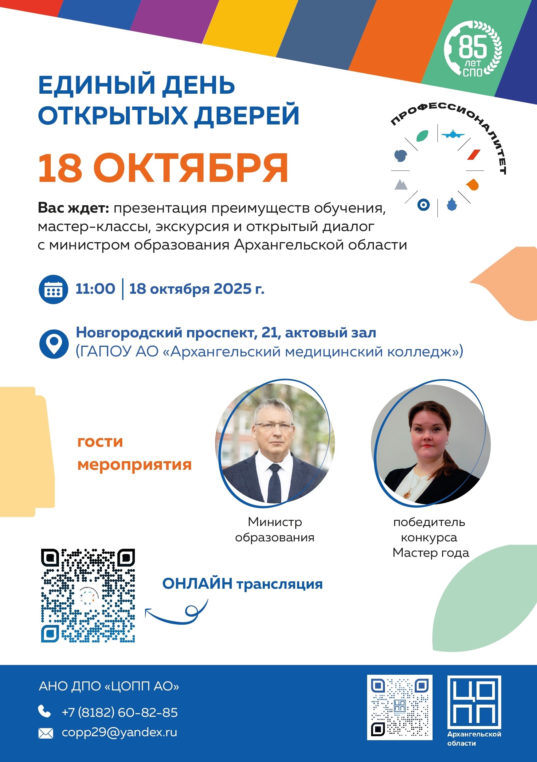 18 октября в Архангельске – Единый день открытых дверей в колледжах и техникумах.
