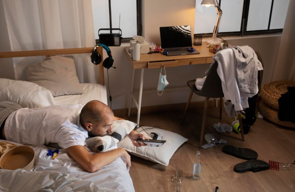 Что касается мусора, то если его не выбрасывать, вскоре он станет настоящим магнитом для насекомых. В течение той же недели все вещи начинают беспорядочно расползаться по дому. Сначала это всего лишь пара забытых носков, но к концу первой недели свободные поверхности исчезают. И в этот момент психическое состояние может ухудшиться: беспорядок начинает угнетать.